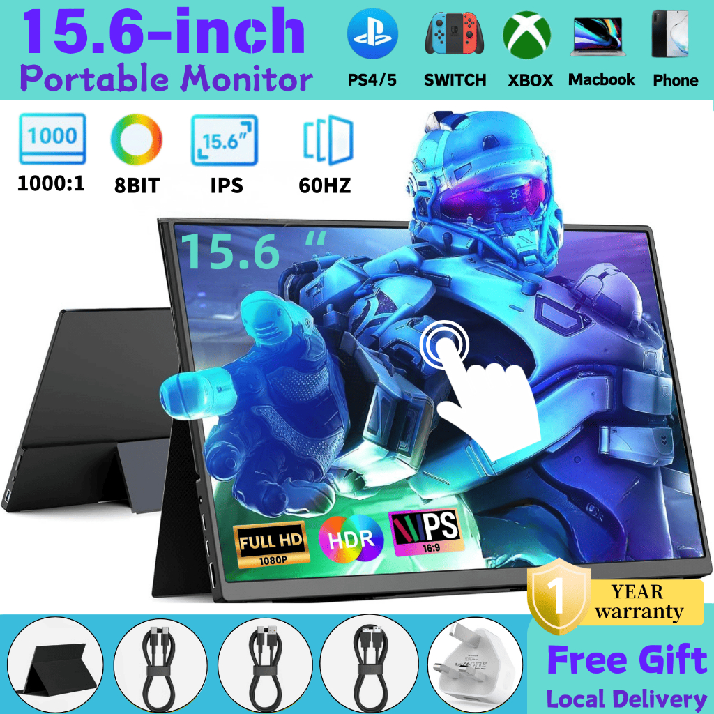 Portable Laptop Monitor 15.6 inch 1080P Touchscreen/60Hz IPS with Speaker for Laptop PC Phone