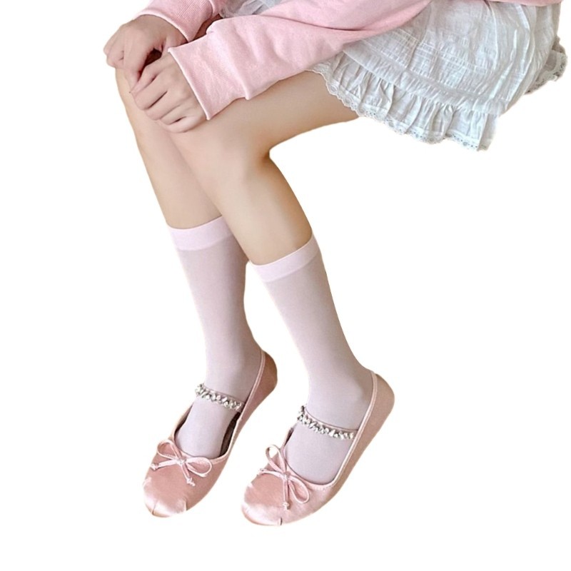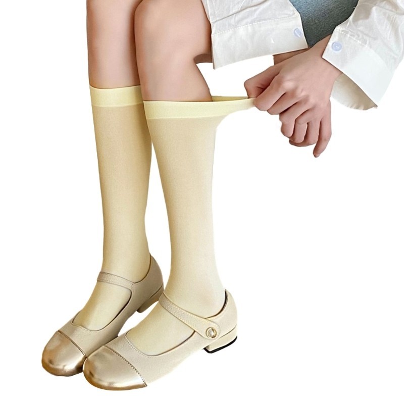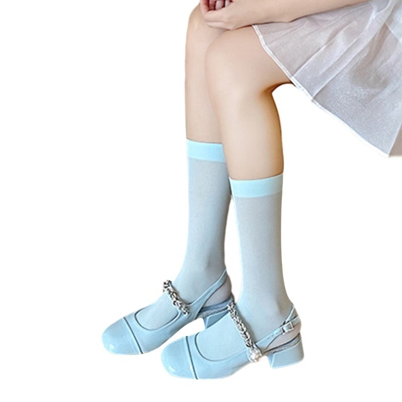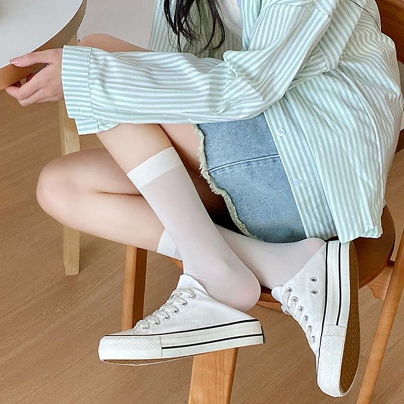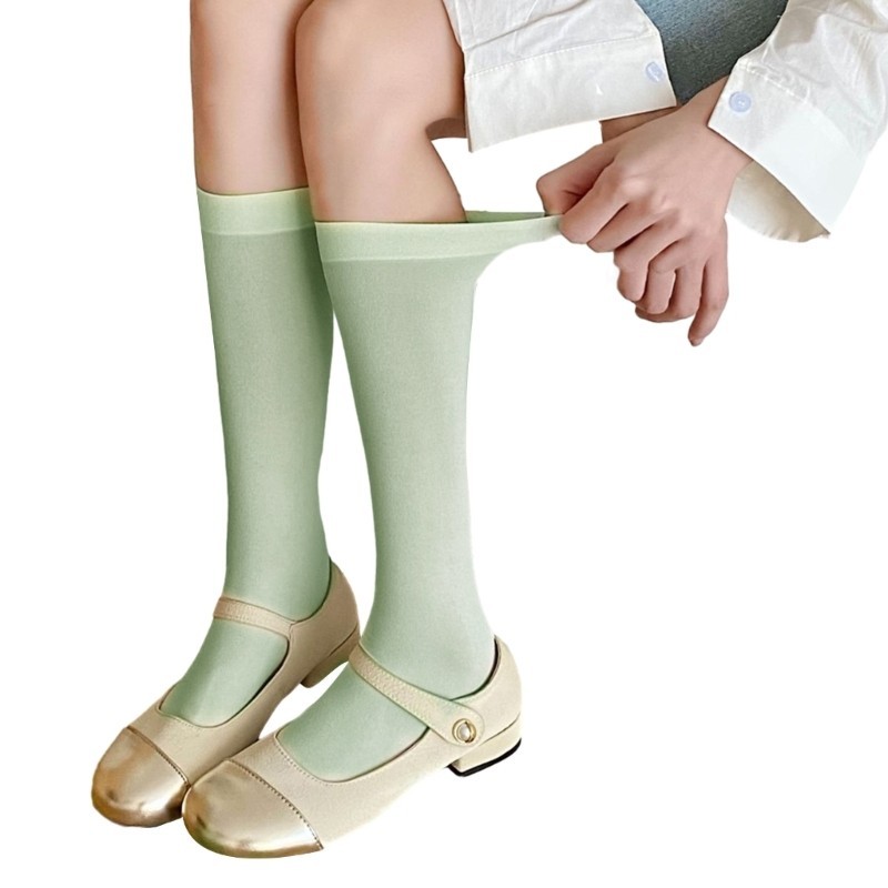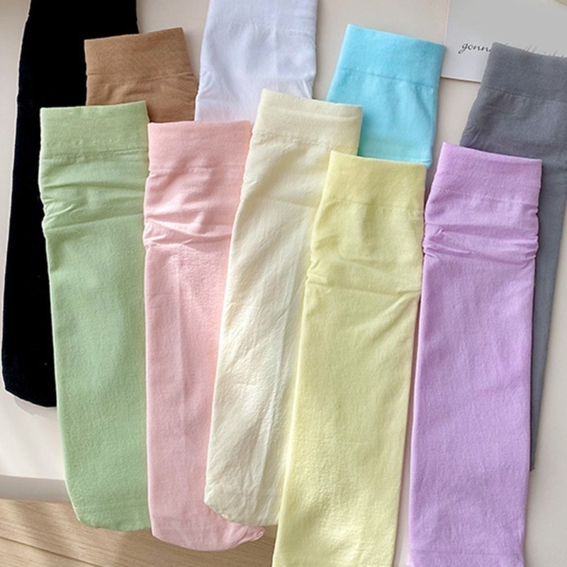 ✿ Women Summer Ice Silk Solid Candy Color Calf Socks Japanese Style Sweet School Student Thin Breathable Middle Tube Soc