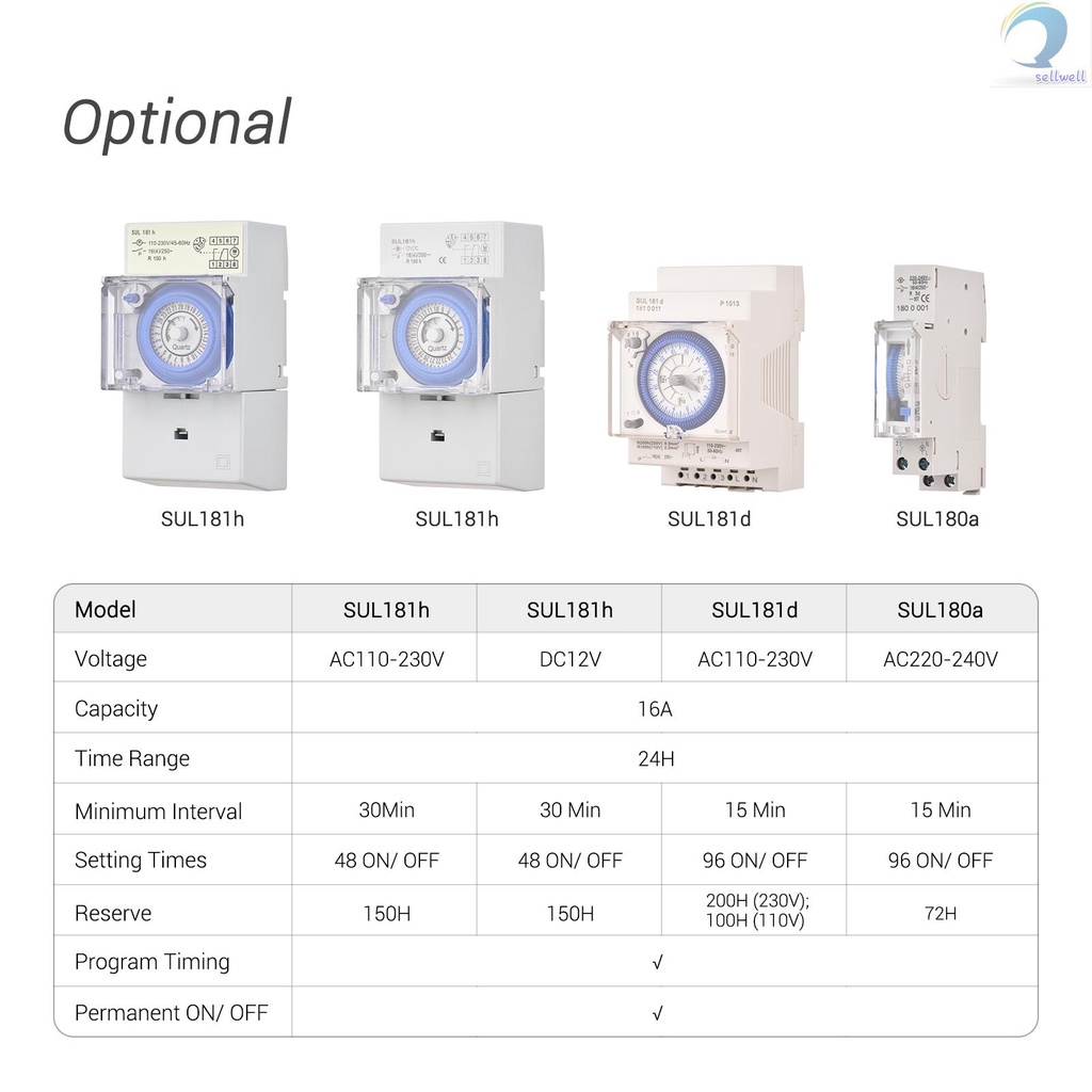 Mechanical 24 Hours Timer Switch AC 220-240V 15 Minutes Interval 96 Times ON/ OFF Programmable Electrical Timer DIN Rail Installation Relay Switch [Sellwell]TOP2