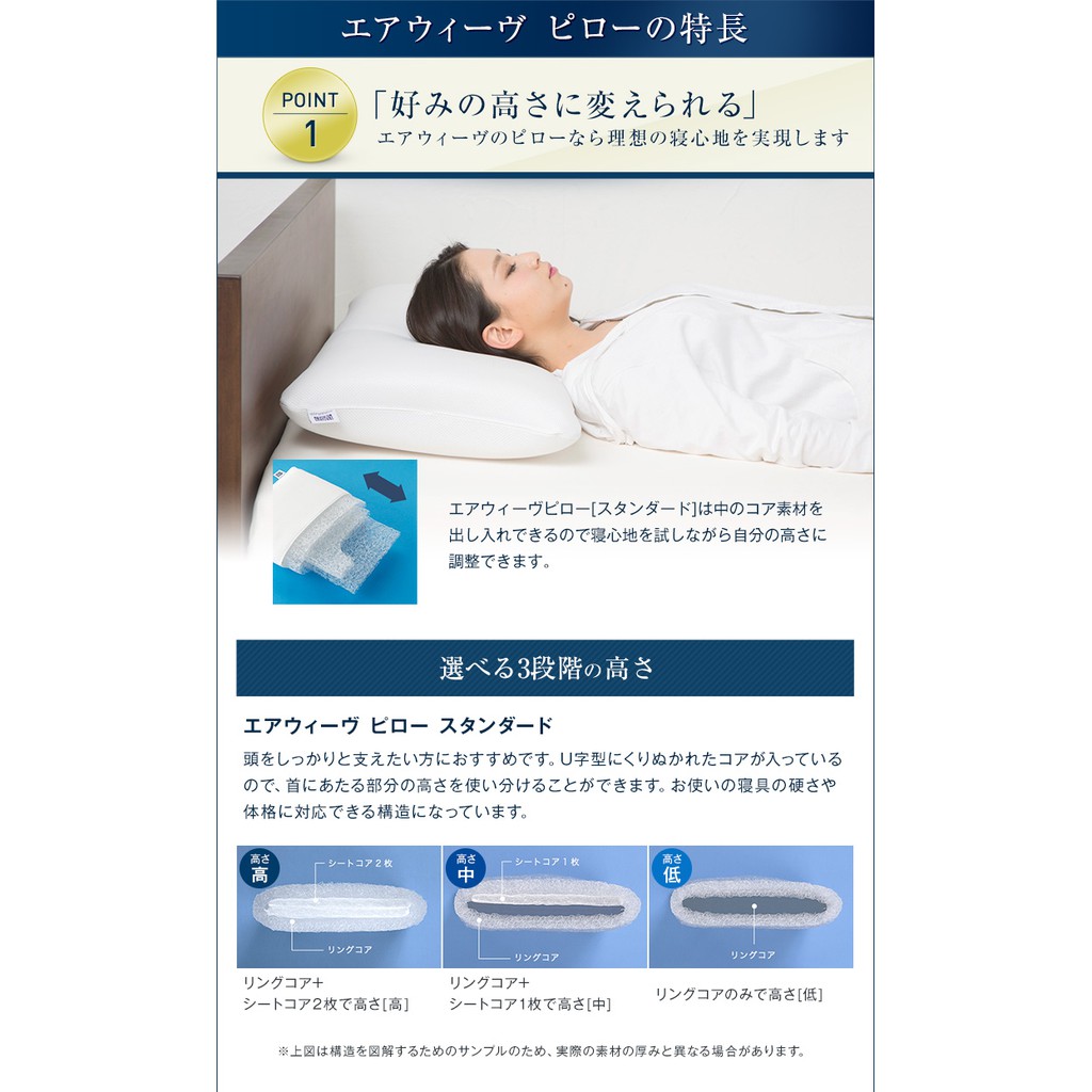 【Airweave】Pillow Sline high resilience / washable/ changeable heights [2-04091-1]