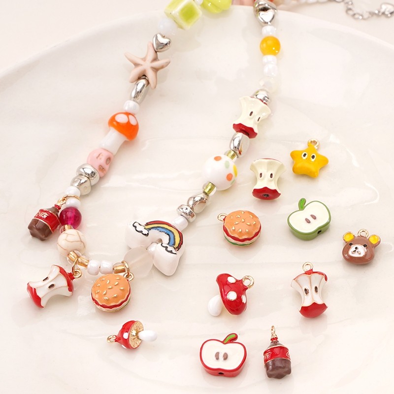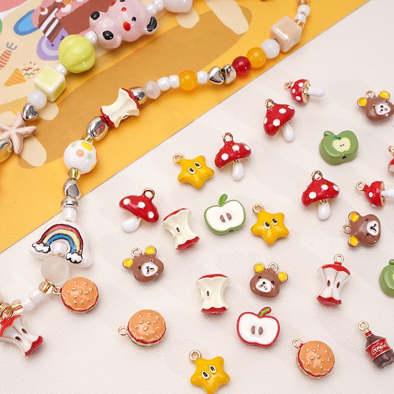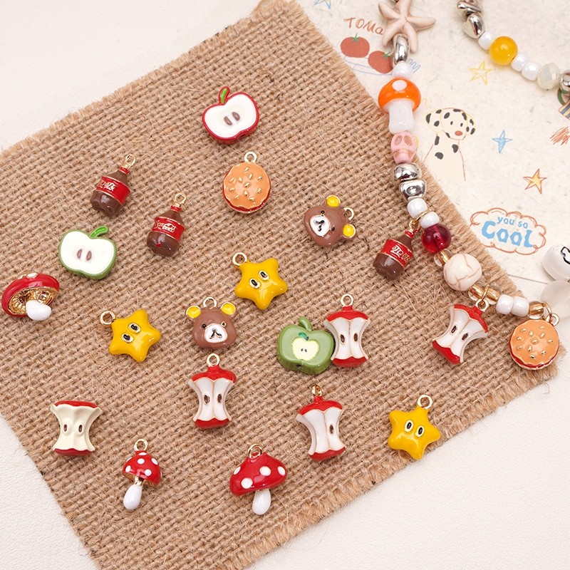 1Pc Alloy Oil Drip Charm Beads Cute Apple Mushroom Beaded Pendant For DIY Bracelet Necklace Jewelry Making Accessories