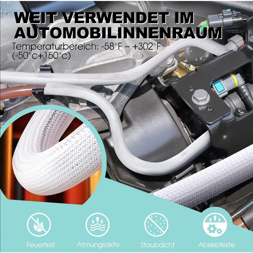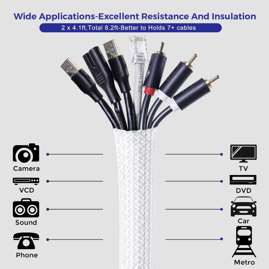 【White 19mm D】White Large Split Braided Cable Sleeve, Wire Organizers for Cords Office Desk Management