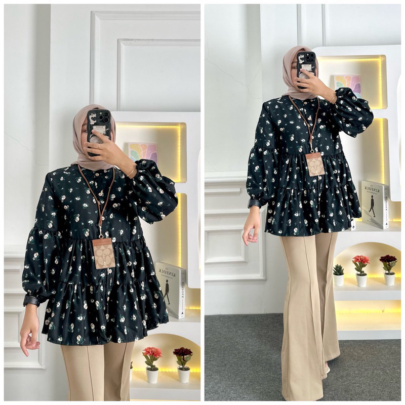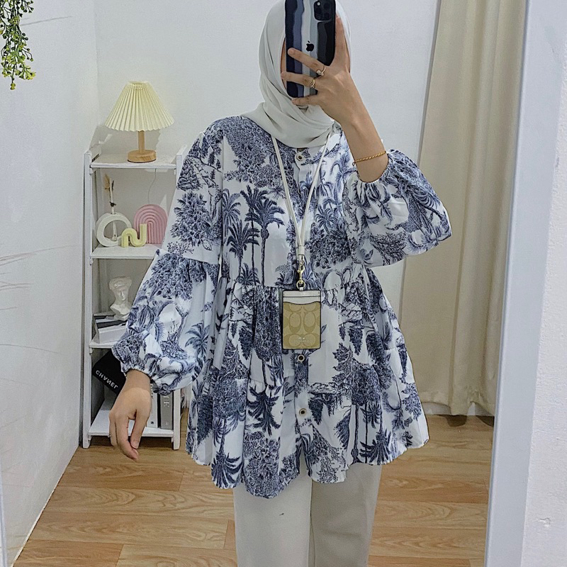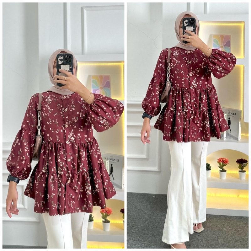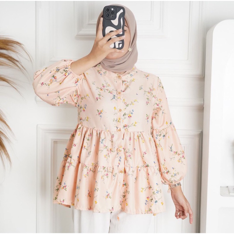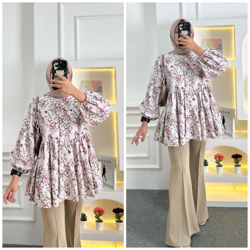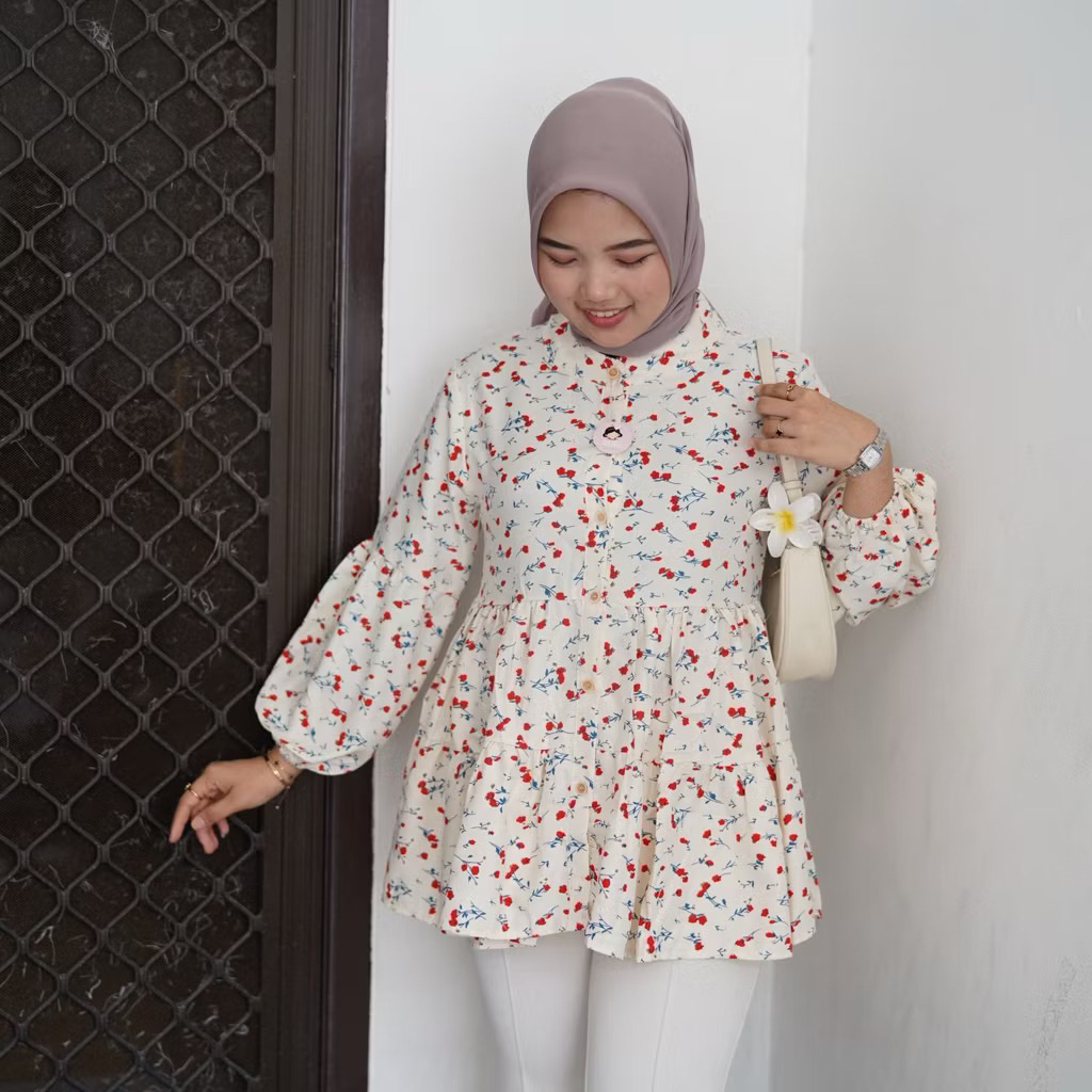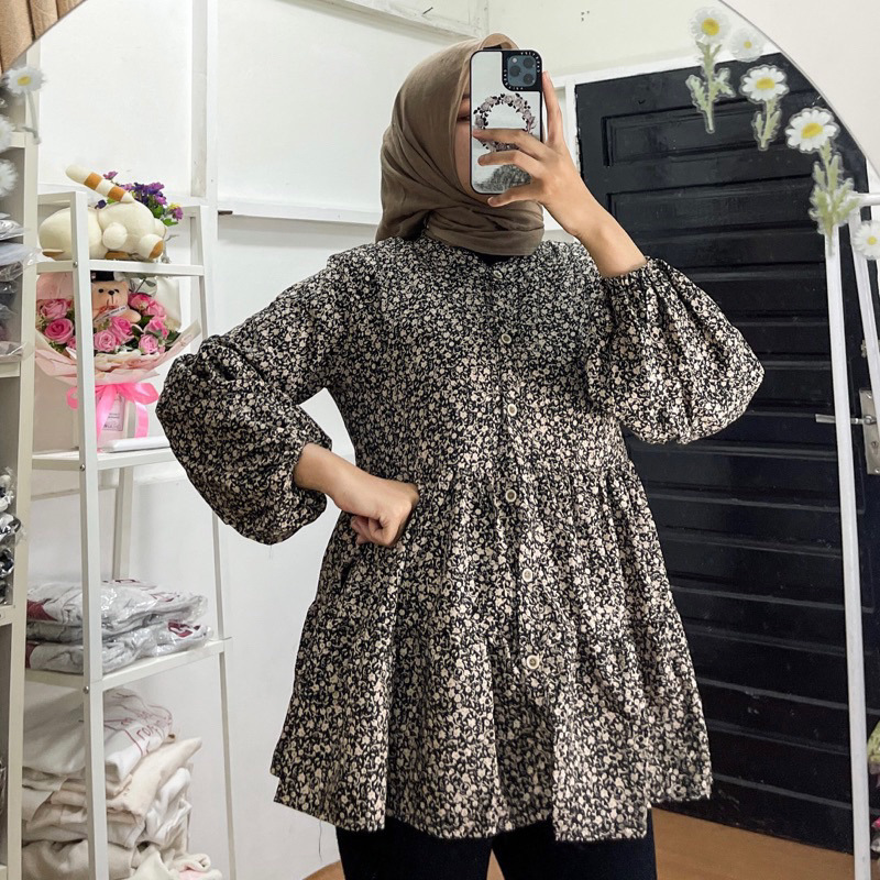 AIDA BLOUSE BABYDOLL/ BLOUSE FLORAL OVERSIZE FLOWER MOTIF BLOUSE TOP