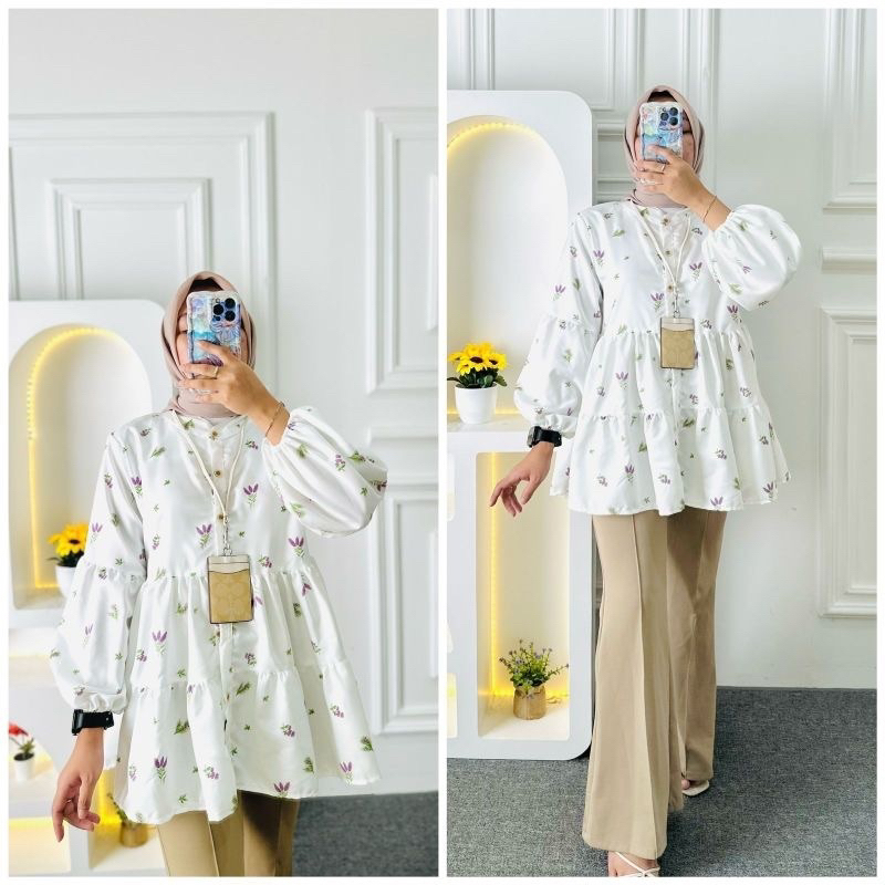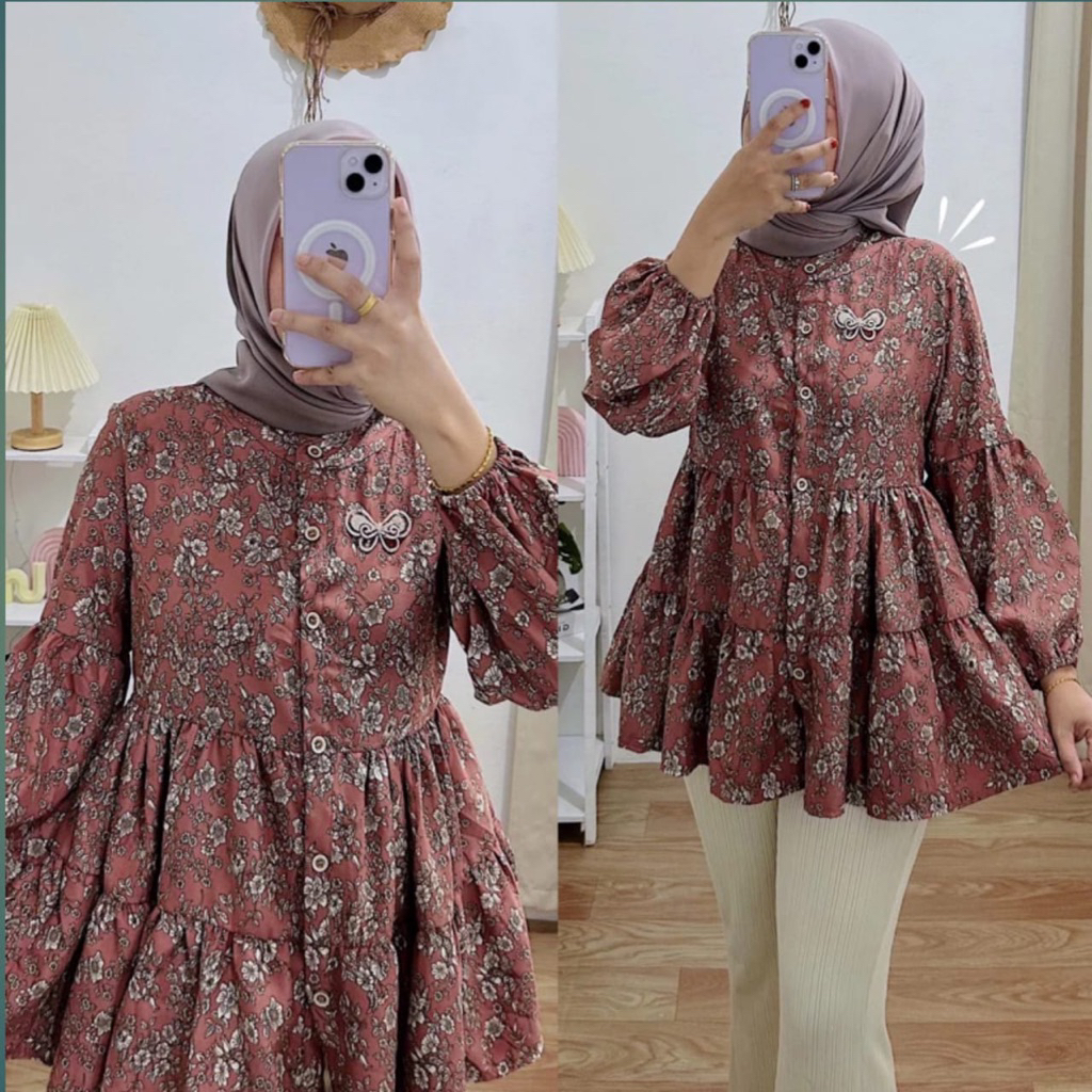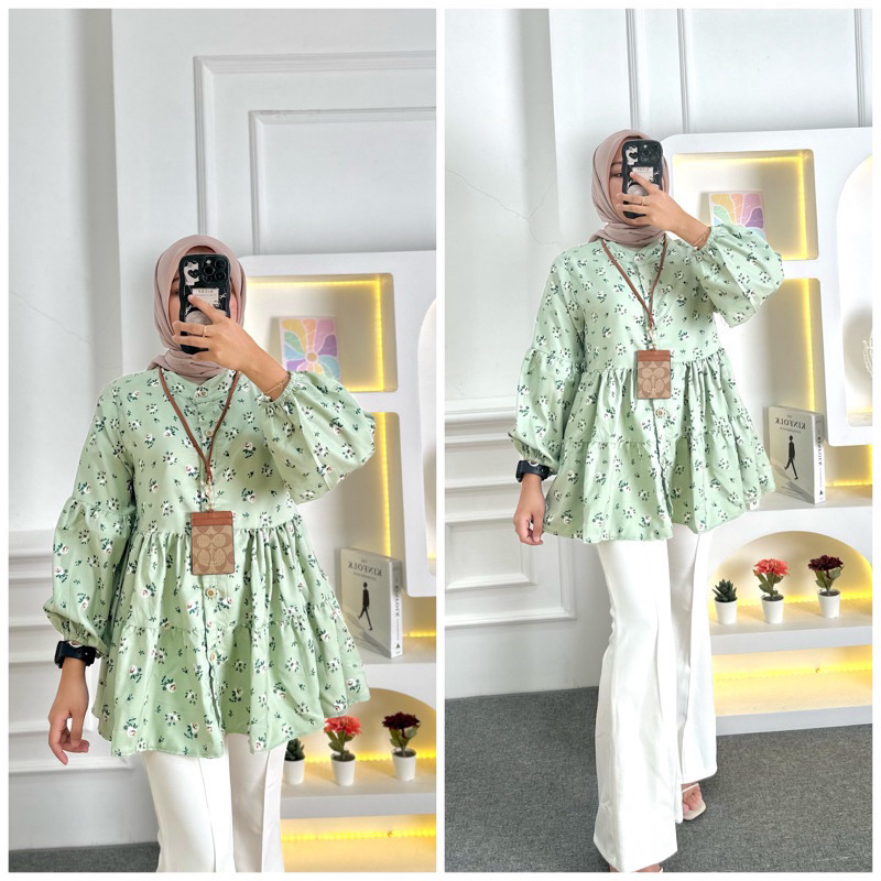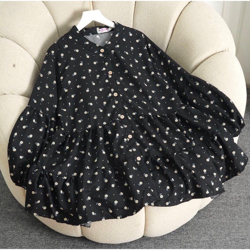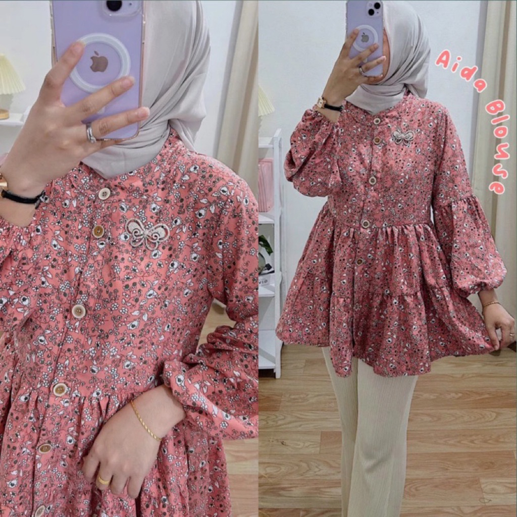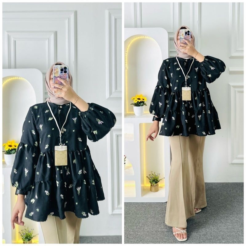 AIDA BLOUSE BABYDOLL/ BLOUSE FLORAL OVERSIZE FLOWER MOTIF BLOUSE TOP