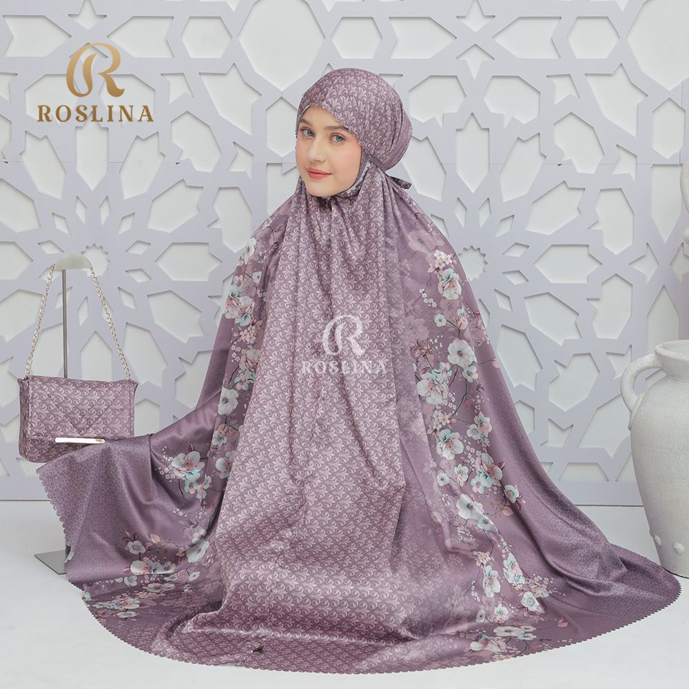 Roslina Mukena Maxmara Luxury Jumbo Printing Laser cut Silk Premium Motif Mukenah Dewasa