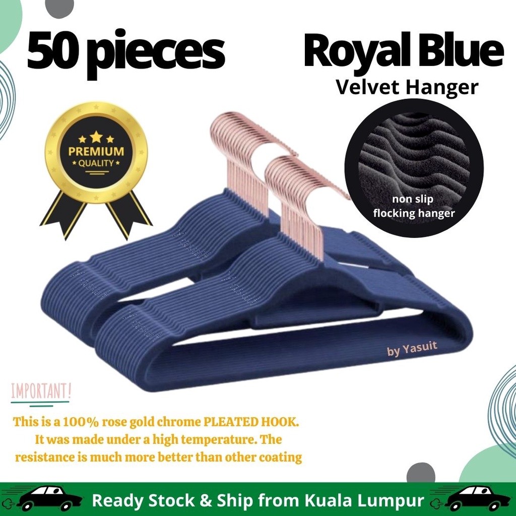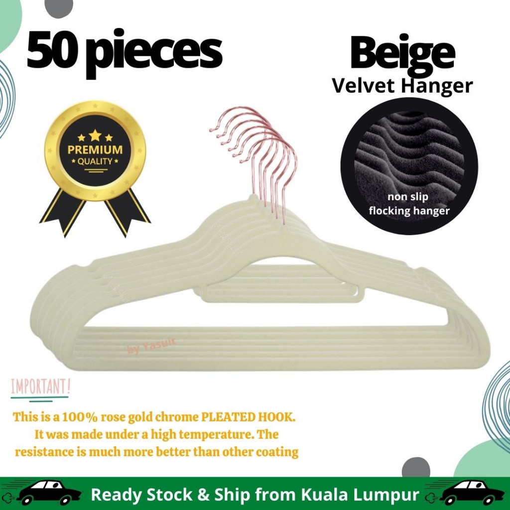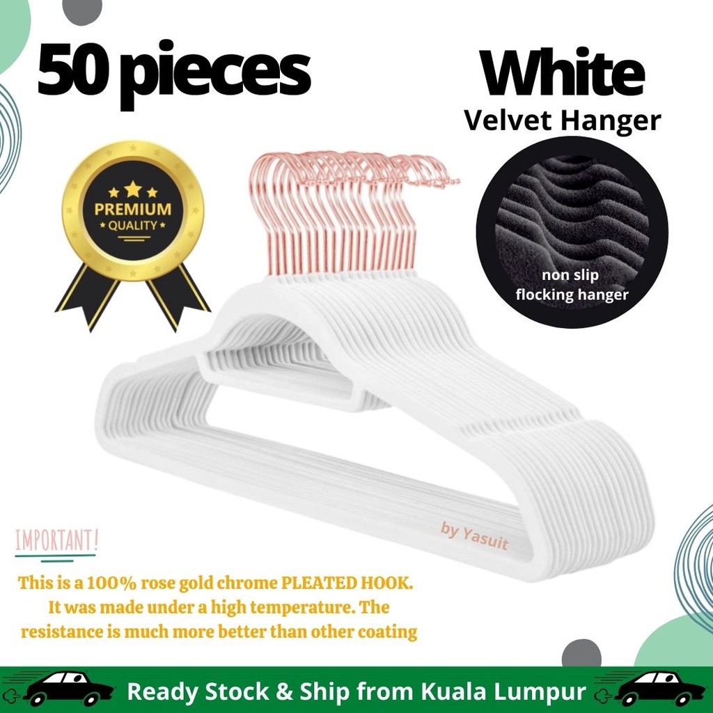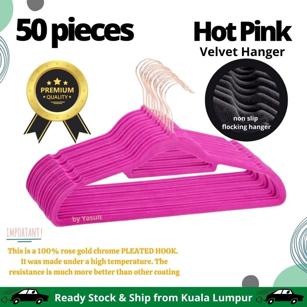 50 pieces Premium Velvet Flocking Hanger Non Slip Multipurpose Super Quality Rose Gold Pleated Economy Penyangkut Baju