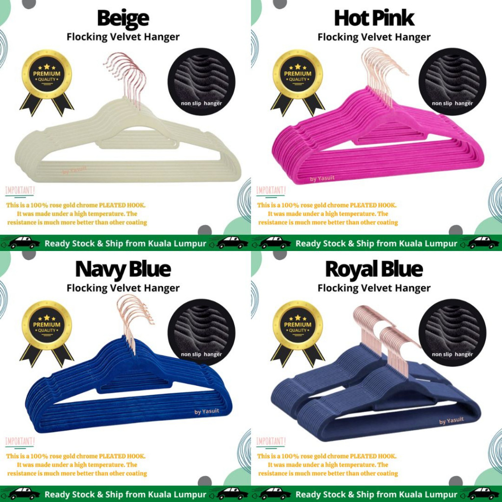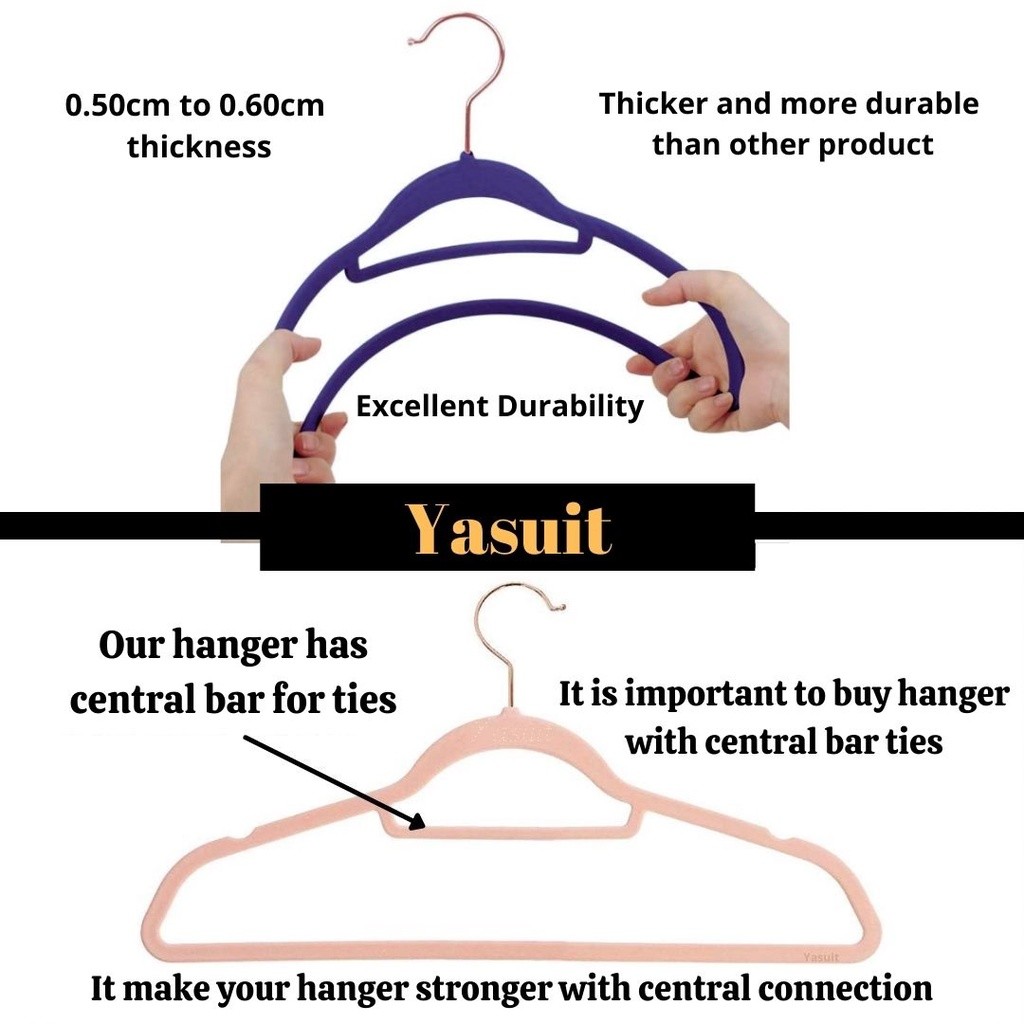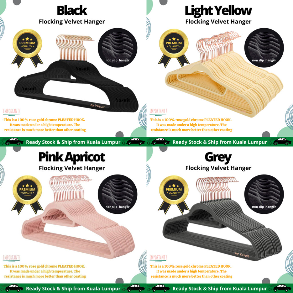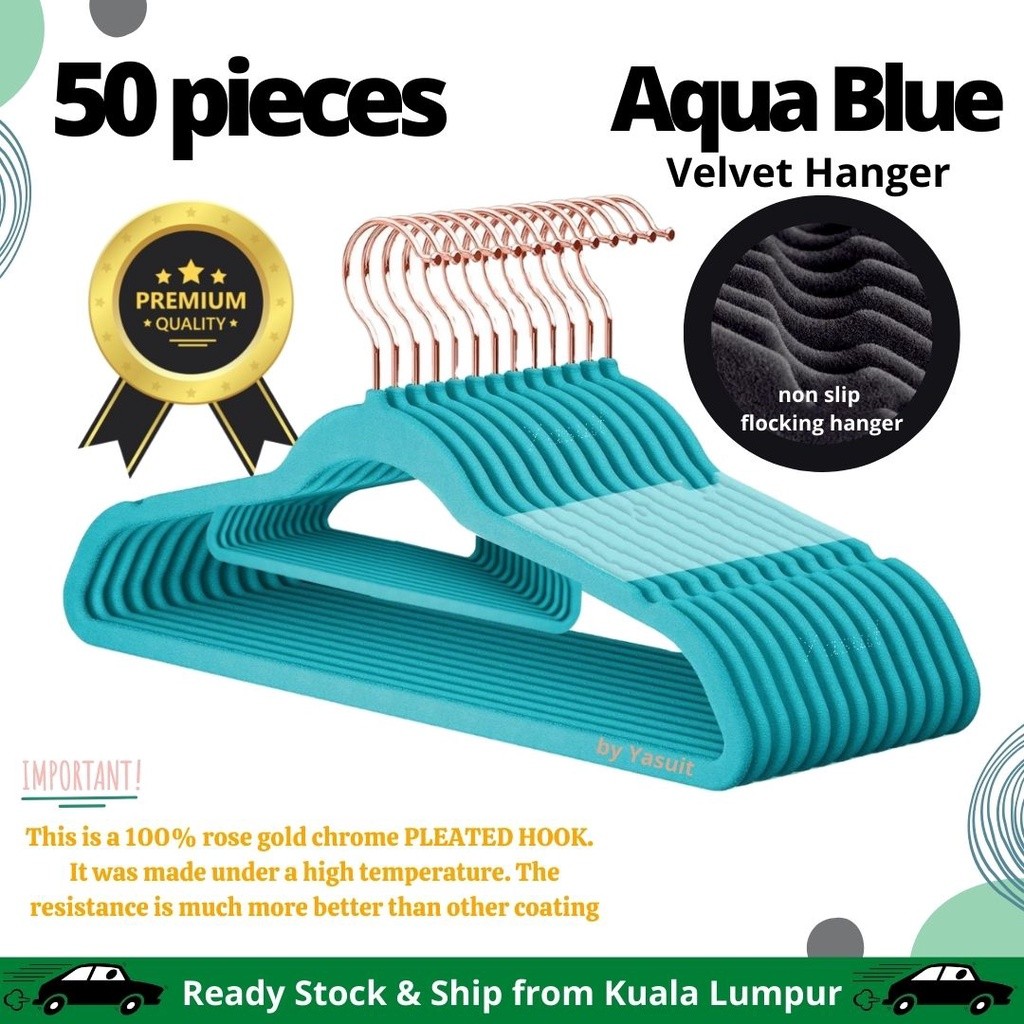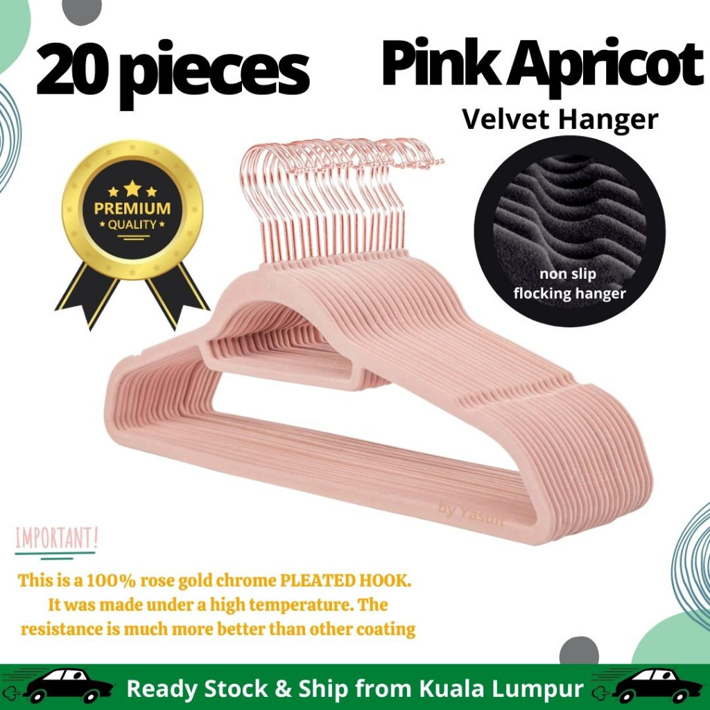 50 pieces Premium Velvet Flocking Hanger Non Slip Multipurpose Super Quality Rose Gold Pleated Economy Penyangkut Baju