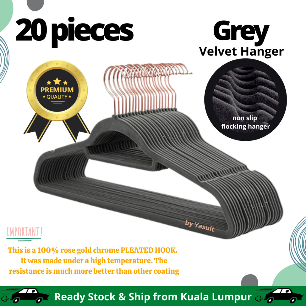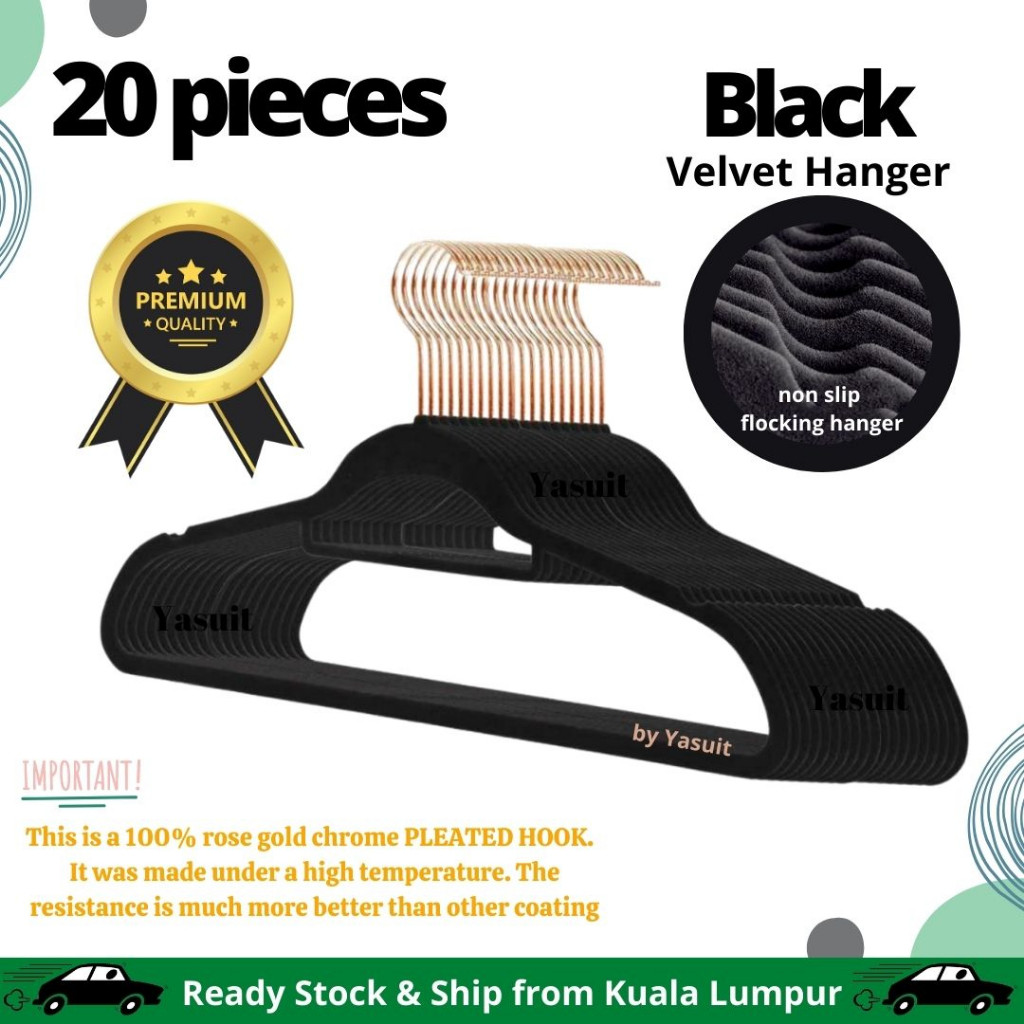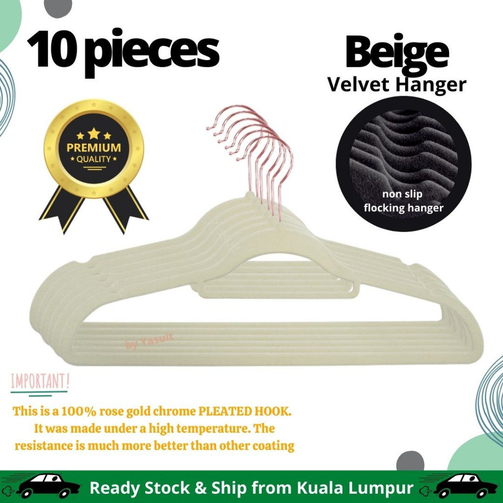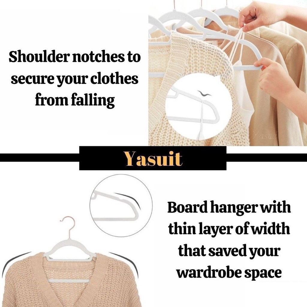 50 pieces Premium Velvet Flocking Hanger Non Slip Multipurpose Super Quality Rose Gold Pleated Economy Penyangkut Baju