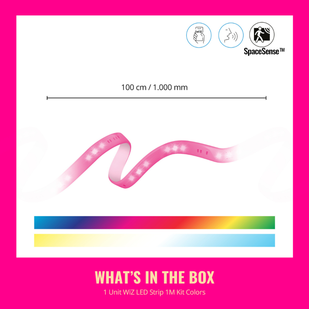WiZ Smart Wifi RGB LED Strip Light 1m Extension | 800lm | Voice/ App Control (Google & Alexa)