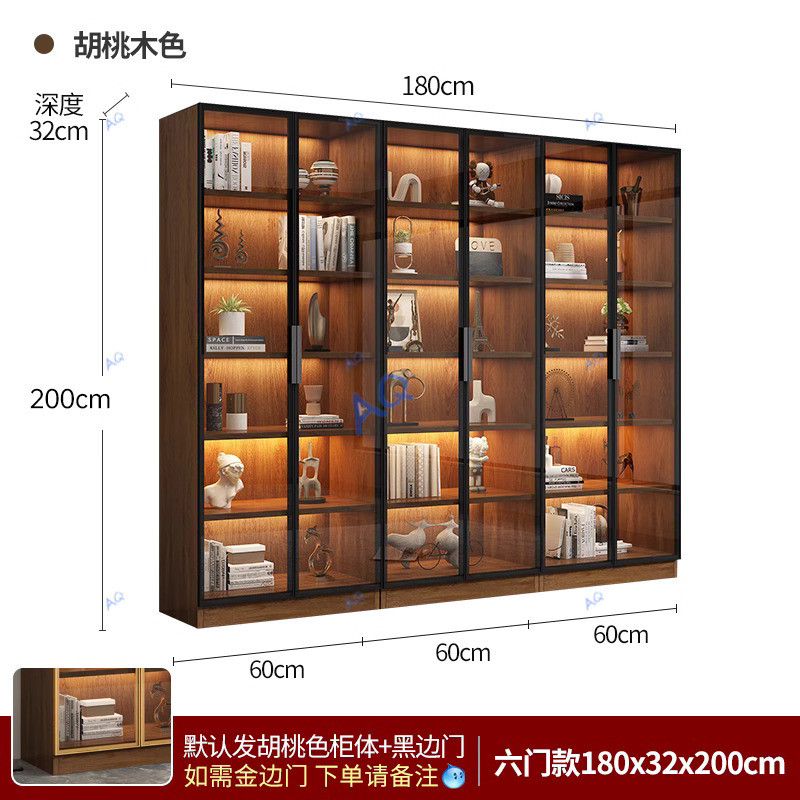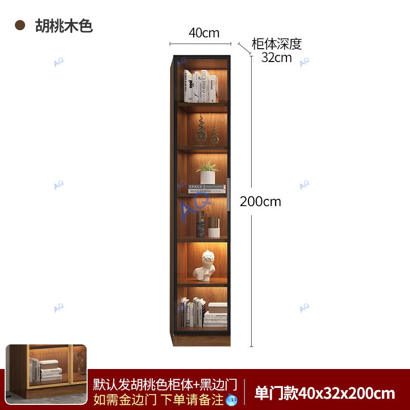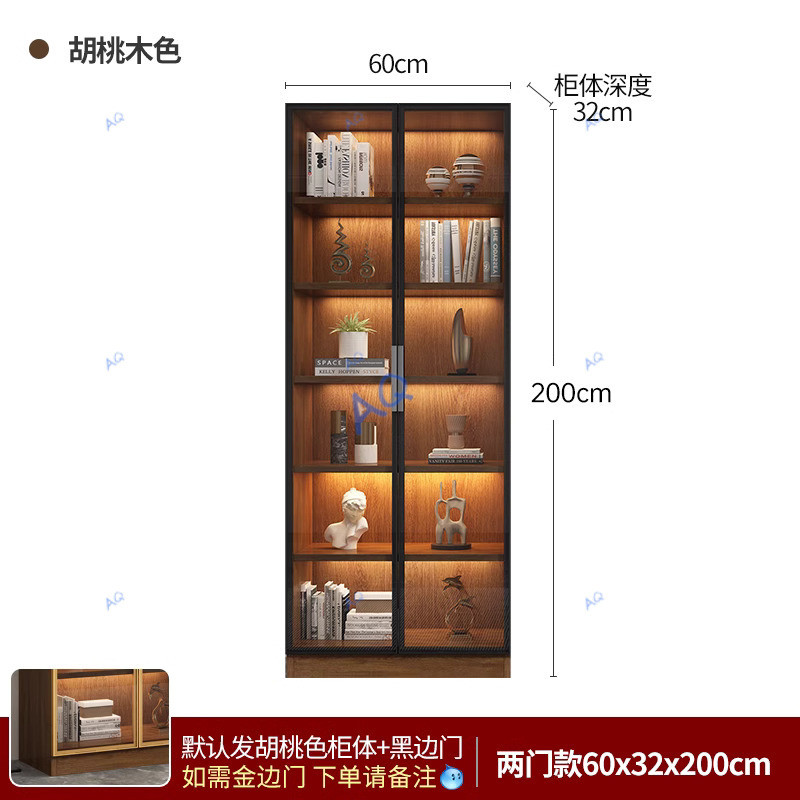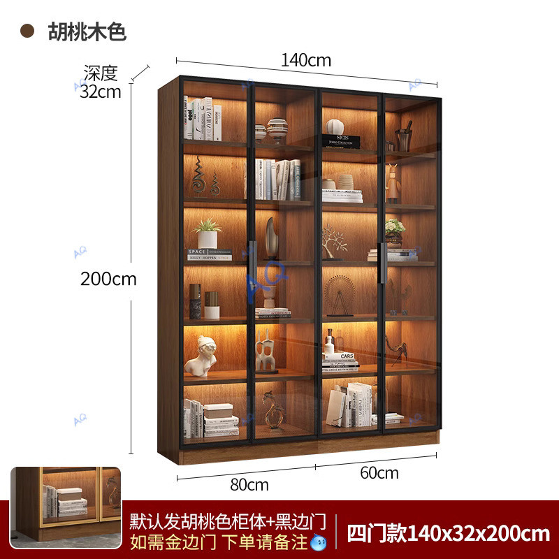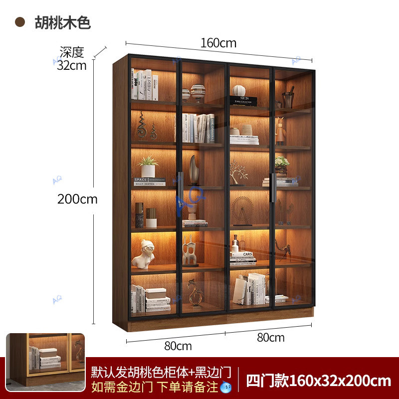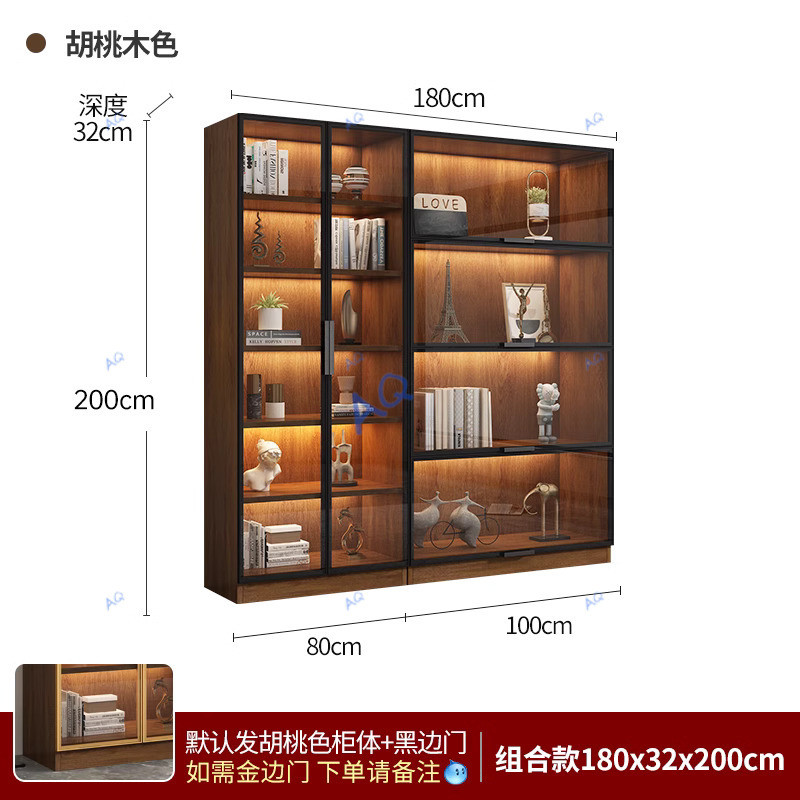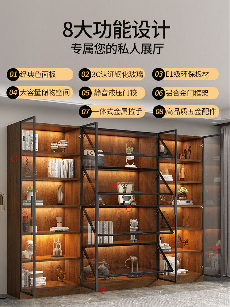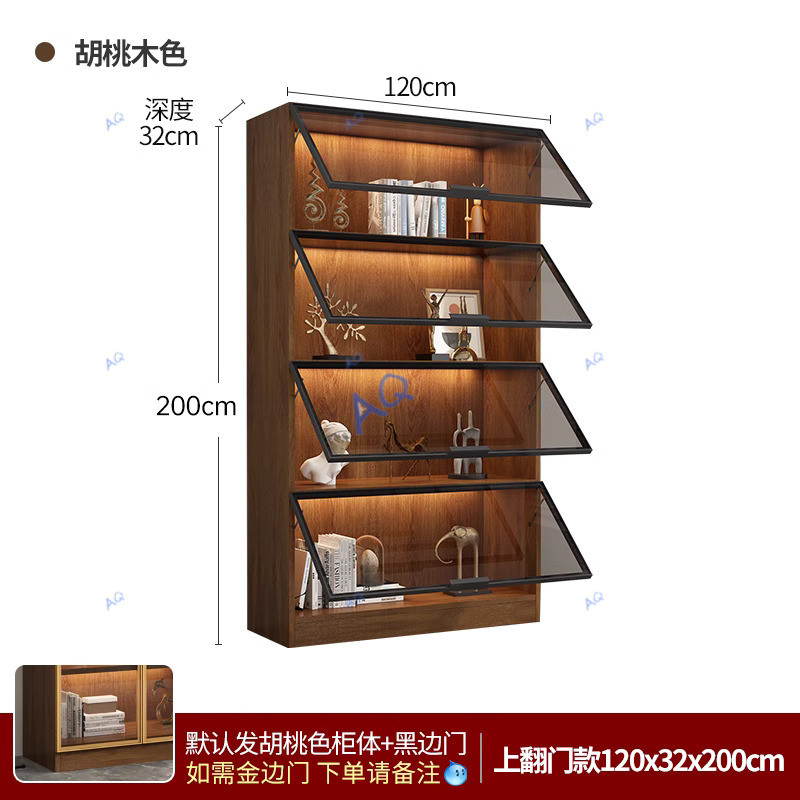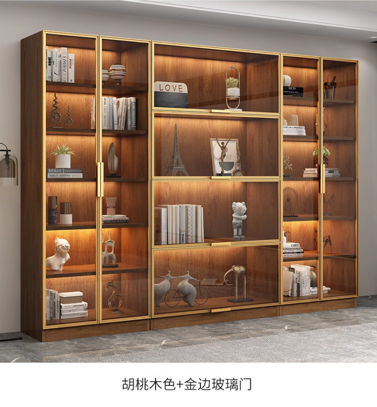 KAQ Display Cabinet Walnut Colored Integrated Whole Wall To Top, Light Modern High-end Living Room Display Cabinet With Glass Door
