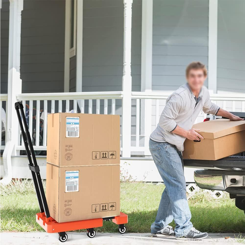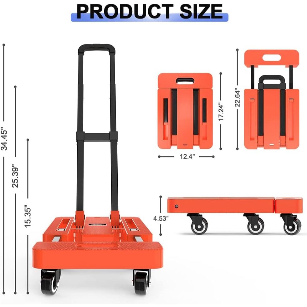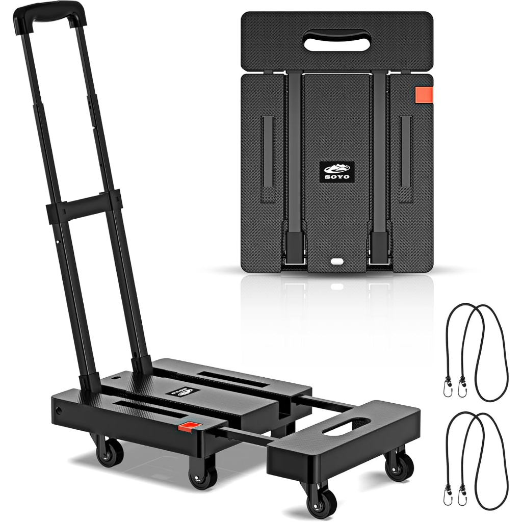 Folding Hand Truck, 500lbs Heavy Duty Dolly, Portable 6 Wheels Collapsible Luggage Cart with 2 Elast Heavy Duty Trolley Foldable Trolley