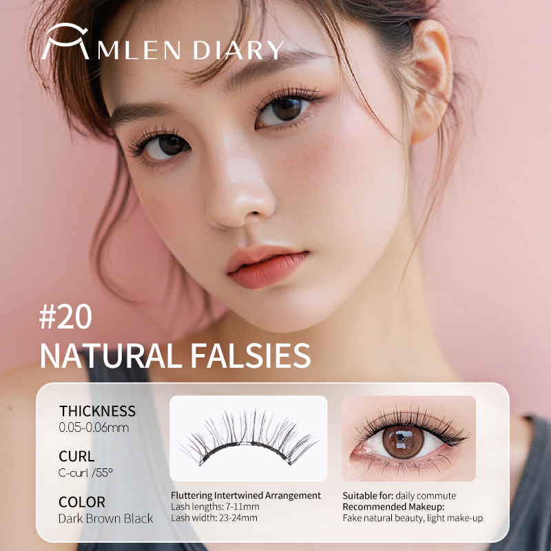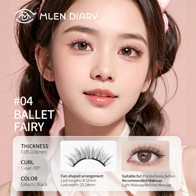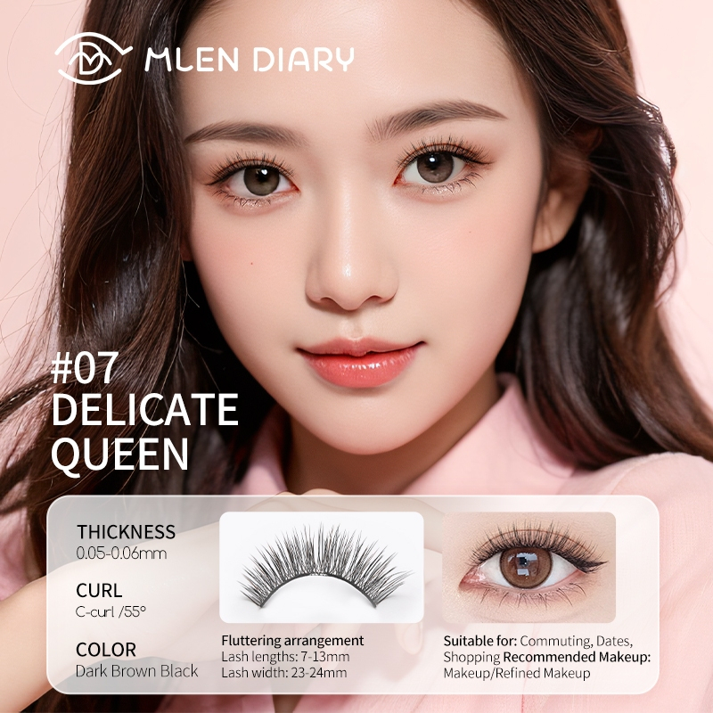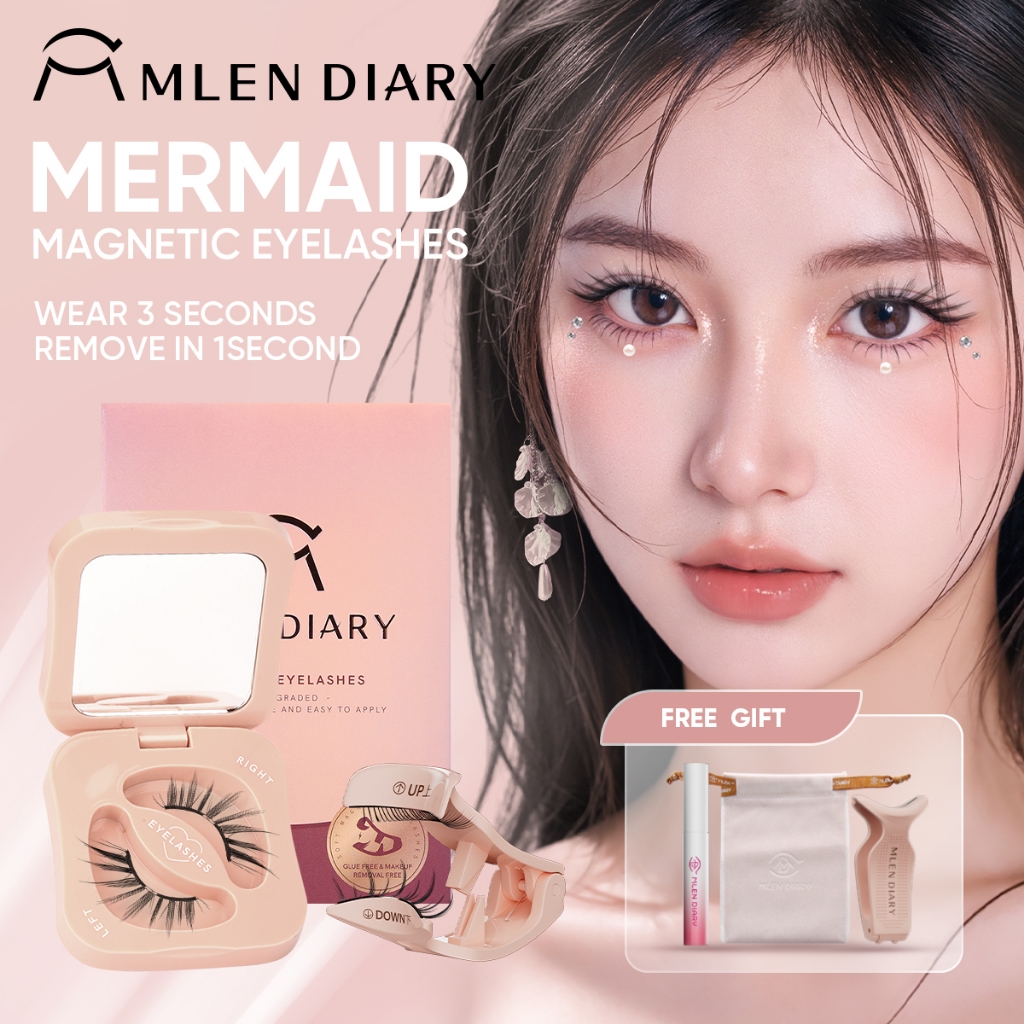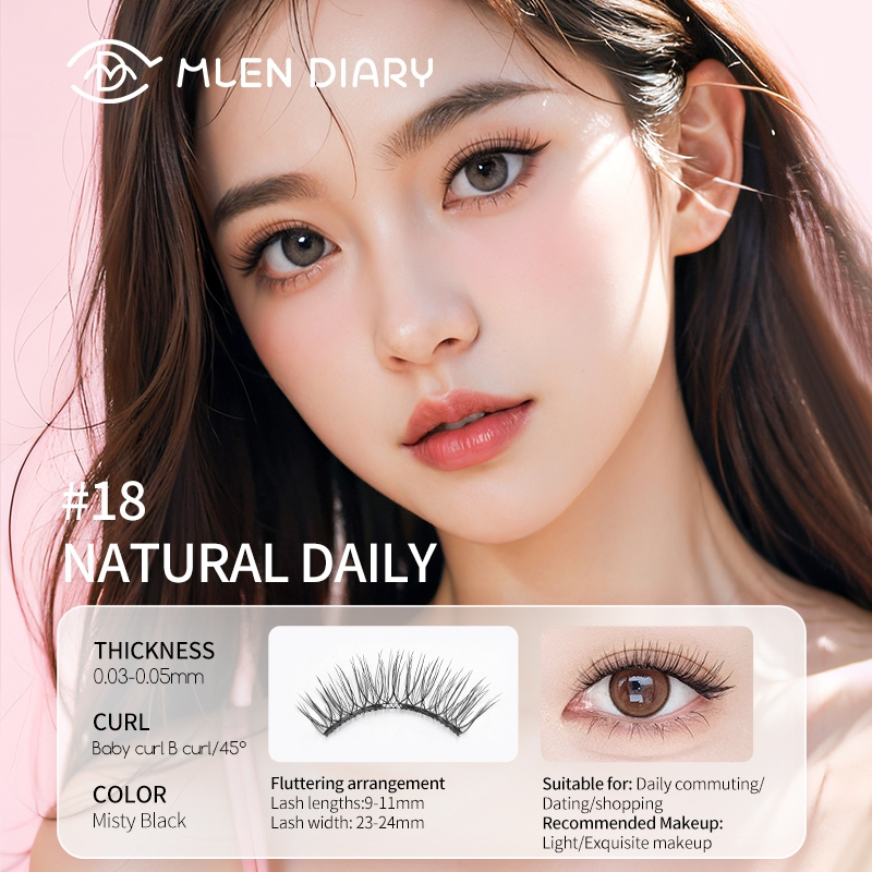 Mlen Diary Soft Magnetic False Eyelashes Set Dupont 3D Patent Individual Natural Reusable With Clip