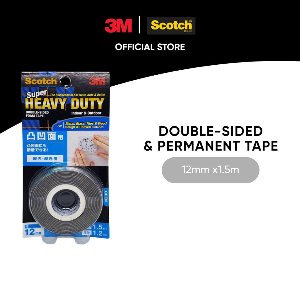 3M™ Scotch® Super Heavy Duty Double-Sided Foam Tape, 1 roll/pack, 12 mm x 1.5 m, For metal, glass, woods & rough surface