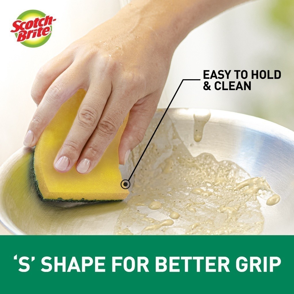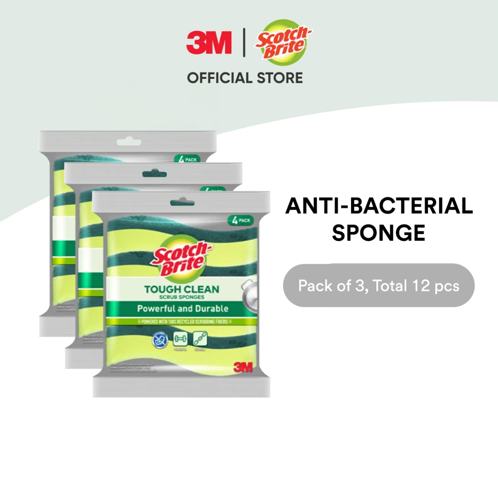 3M™ Scotch-Brite® Tough Clean Scrub Sponge, Anti Bacterial, 4 pcs/pack, For removing stubborn stains & grease