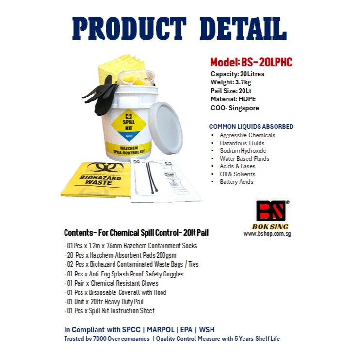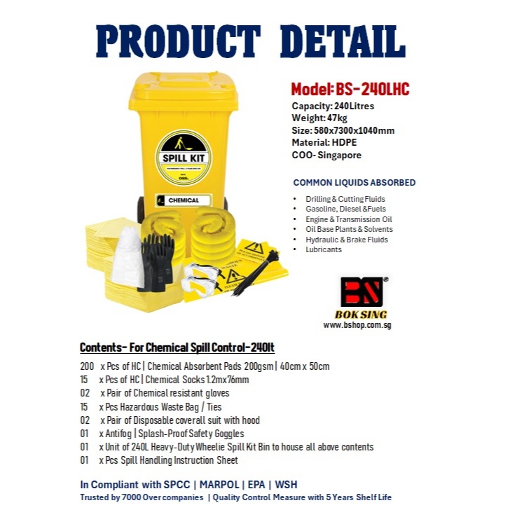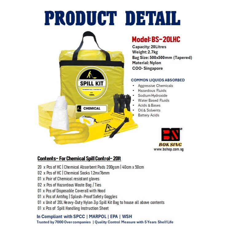HAZCHEM SPILL KIT FOR CHEMICAL SPILL- 20LT TO 240LT/ CHEMICAL CLEANING KIT