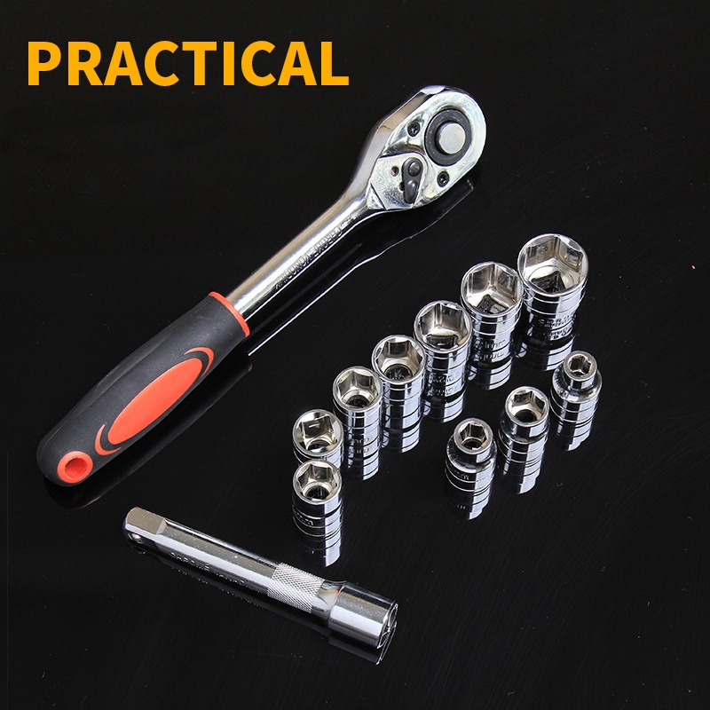 【SG】12Pcs Ratchet Wrench Socket Set 1/2" 1/4" 3/8" Universal Torque Wrench Chrome Kit Spanner Tool Repair Car Box