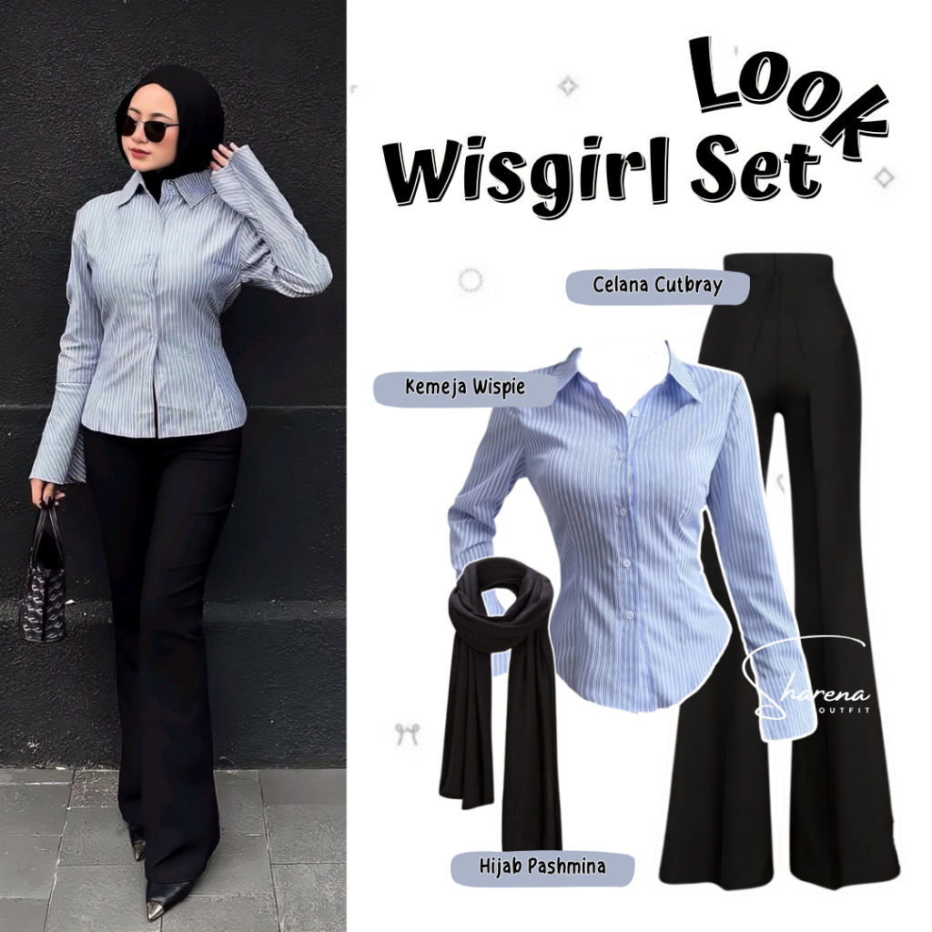KEMEJA Sharenaoutfit - 3 IN 1 One Set Outfit for Teenagers, Hijab, Modern Women, Wispie Shirt Outfit, Cutbray Pants (Wispie Shirt + Cutbray Pants + Hijab) - SET AE284