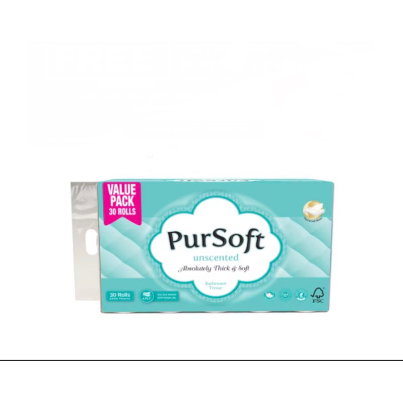 [value pack 30 rolls] Pursoft 4 Ply Toilet Roll | Toilet paper | Tissue Paper | Kleenex | Bathroom Tissue
