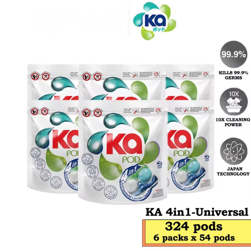 KA 4in1 Laundry Capsules Refill 54 Pods x 6 Packs (324 Pods)–Universal