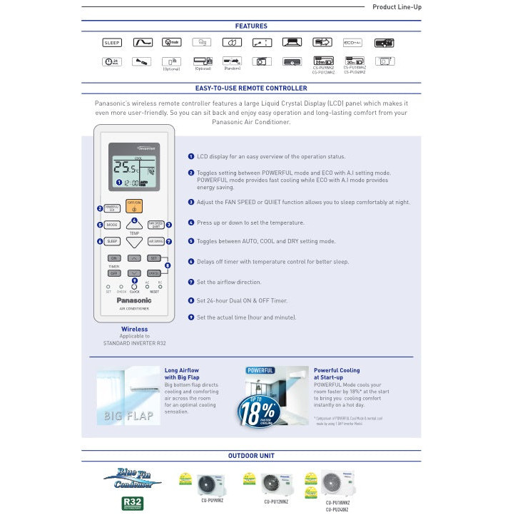 PANASONIC XU SERIES SYSTEM 1 R32 INVERTER AIRCON (4 TICKS/5 TICKS) CLIMATE VOUCHER & EEG GRANT (SUPPLY ONLY)
