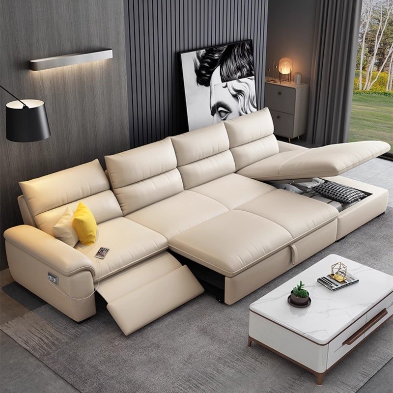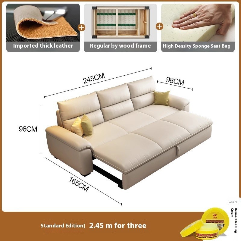 Leather sofa bed, living room multifunctional folding dual-use 2024 new small-sized Guifei intelligent electric sofa