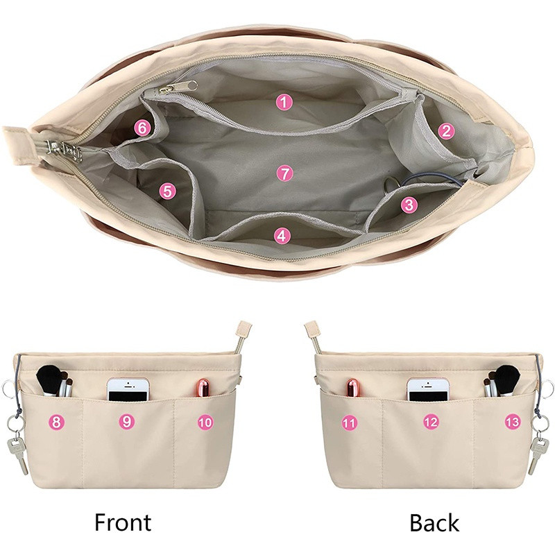 Bag Organizer Insert For Handbag Luxury Nylon Purse Organizer Zipper Inner Bag with 13 Pockets