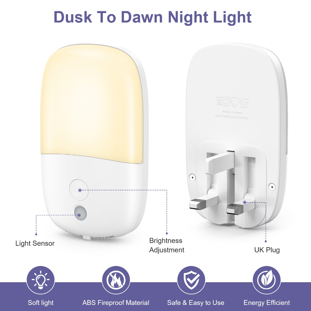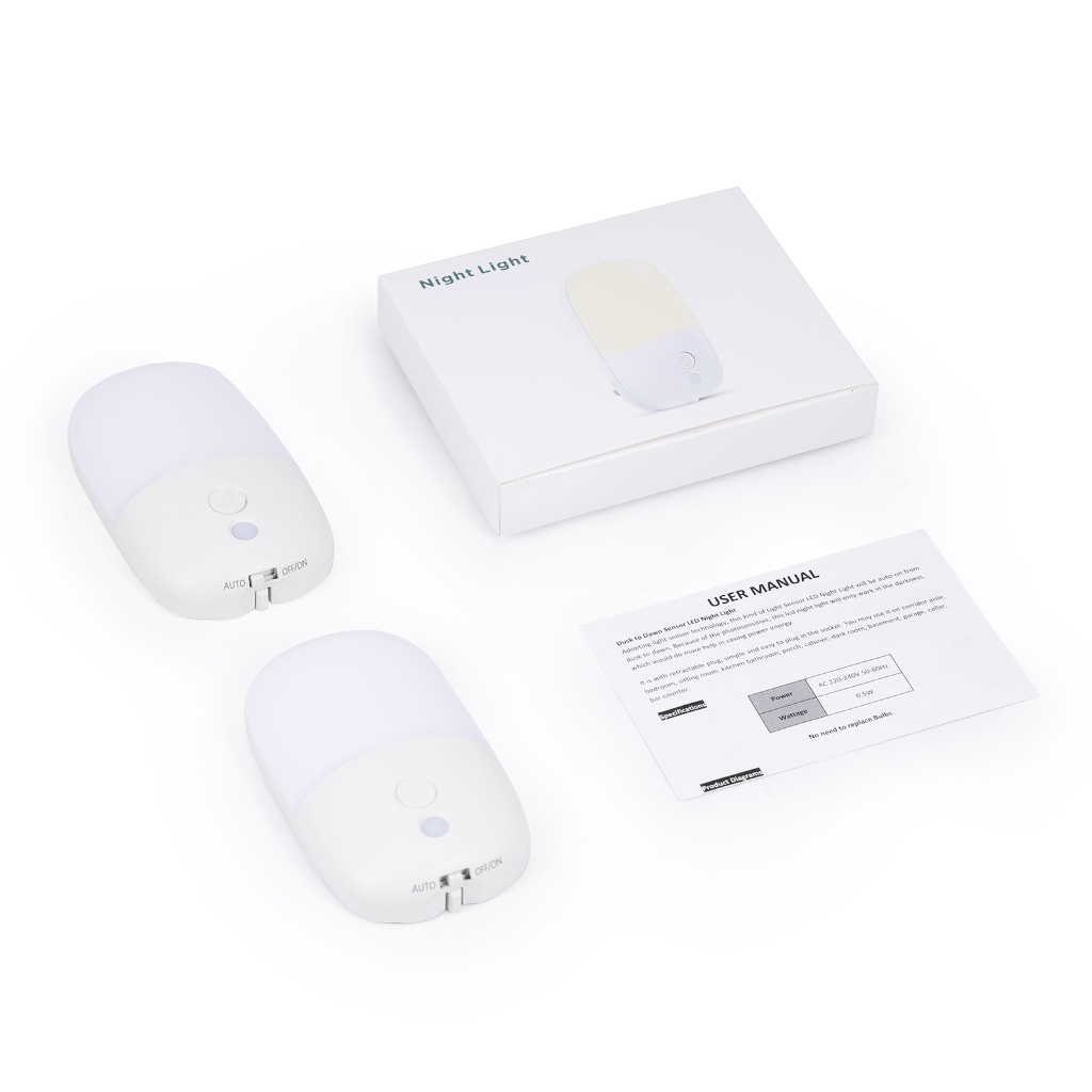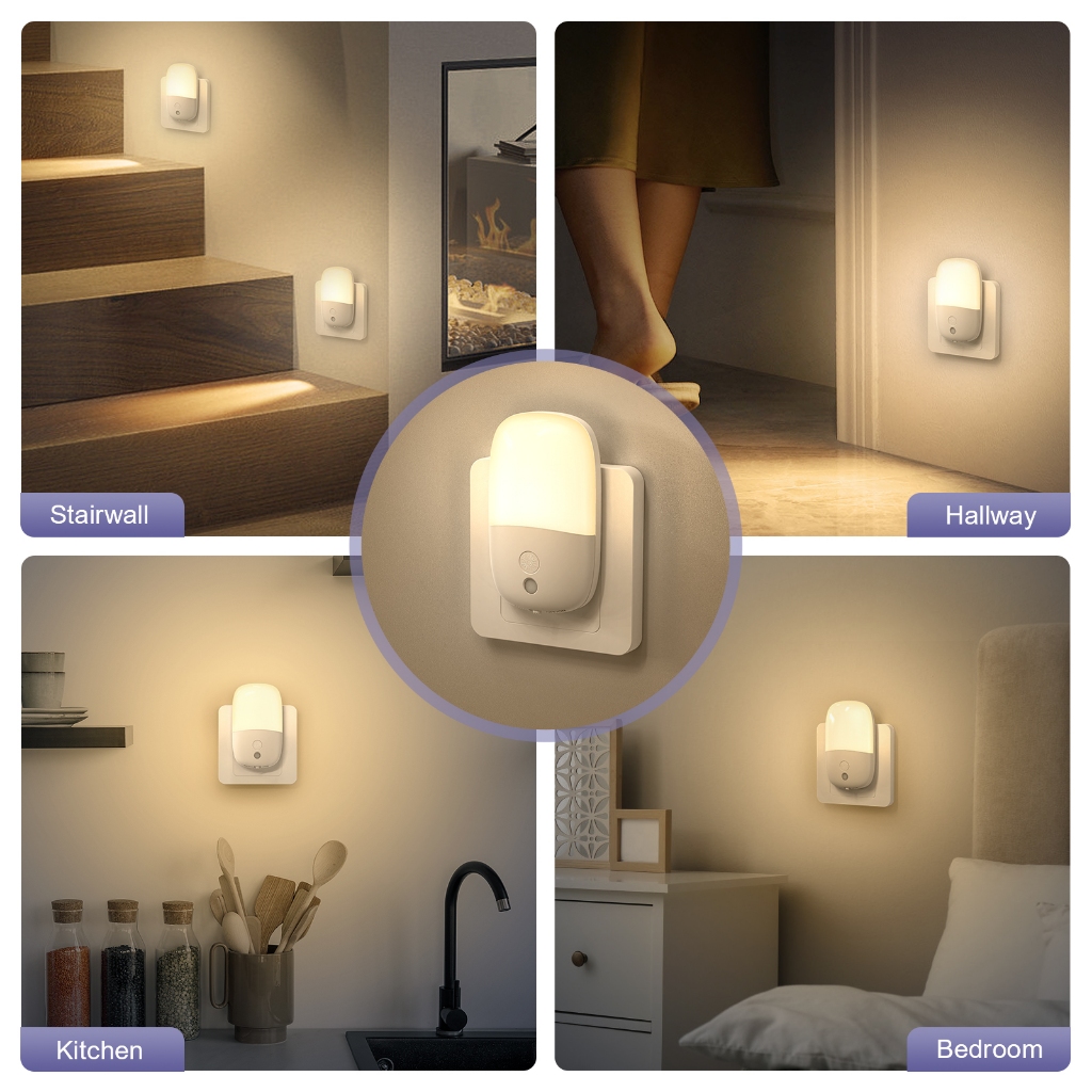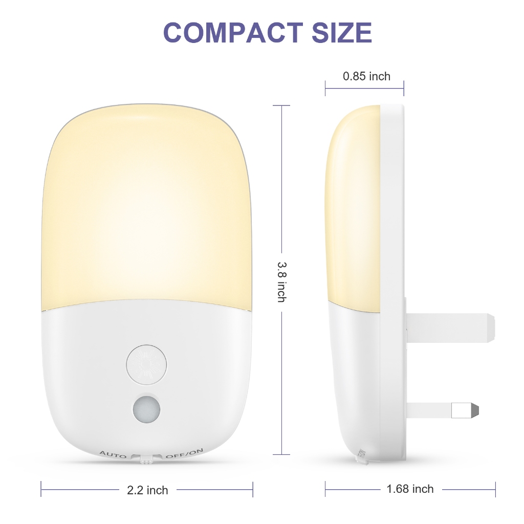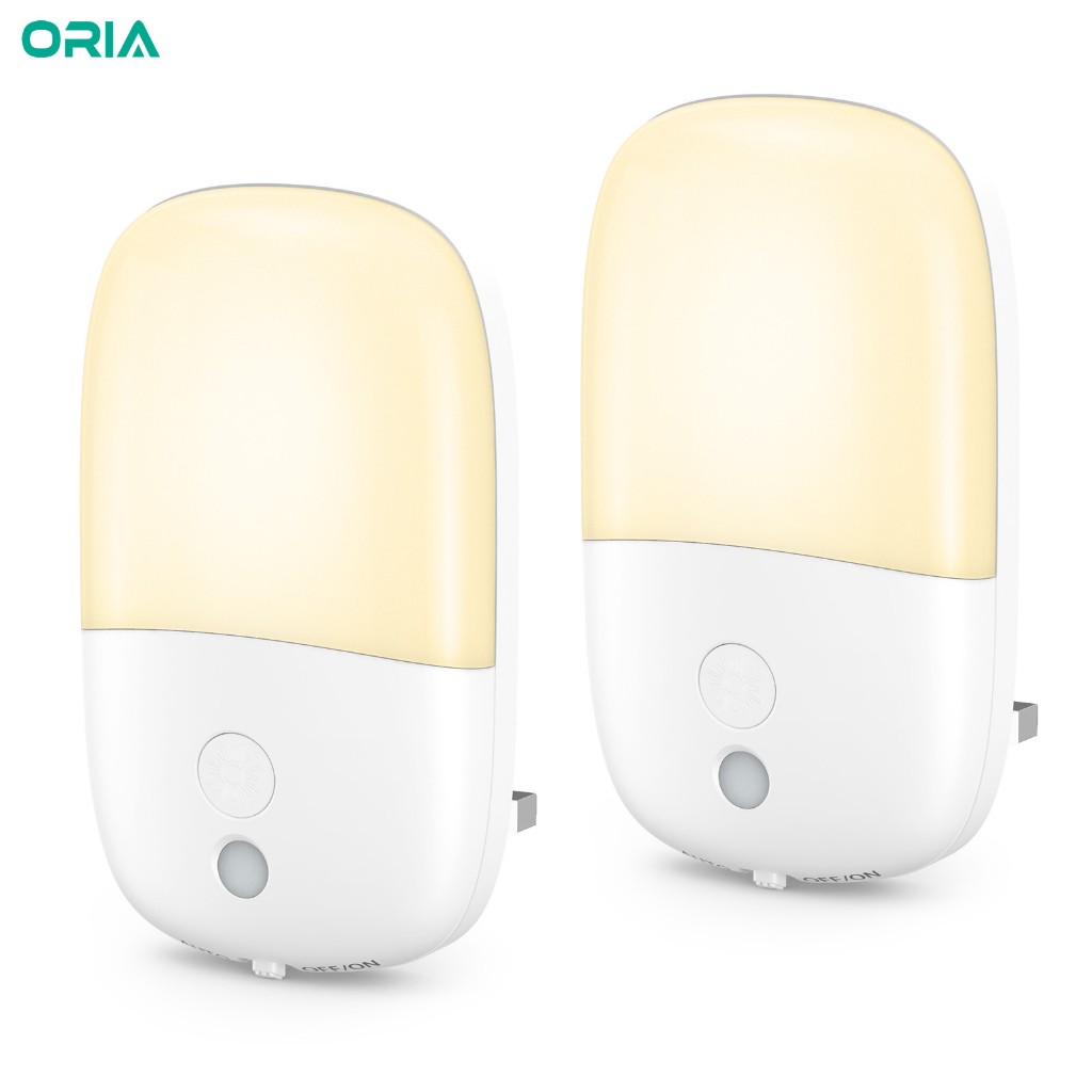 ORIA Plug-in Night Light Auto Sensor Light with Three Modes Adjustable Brightness for Bedroom Bathroom Stairs (2 Pack)
