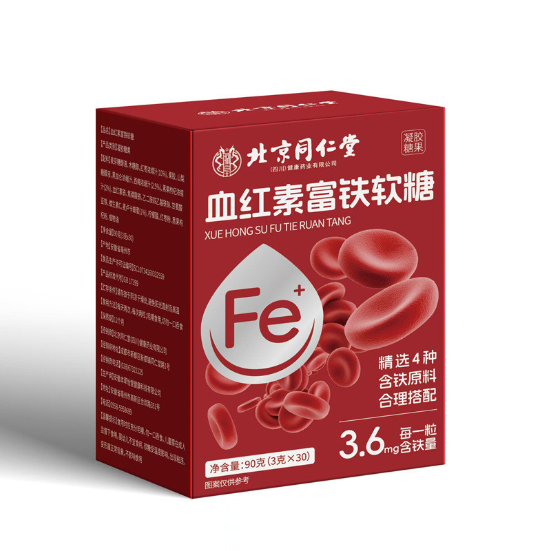 北京同仁堂血红素铁软糖 健康阿胶红枣糖 铁元素维C 滋补软糖 nourish ruddy skin,Improve pale complexion, improve iron