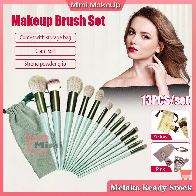 Ready Stock Makeup Brush Set 13pcs Berus Mekap Eye Shadow Brush Blush Brush Soft Brush with Storage Bag Makeup Tools