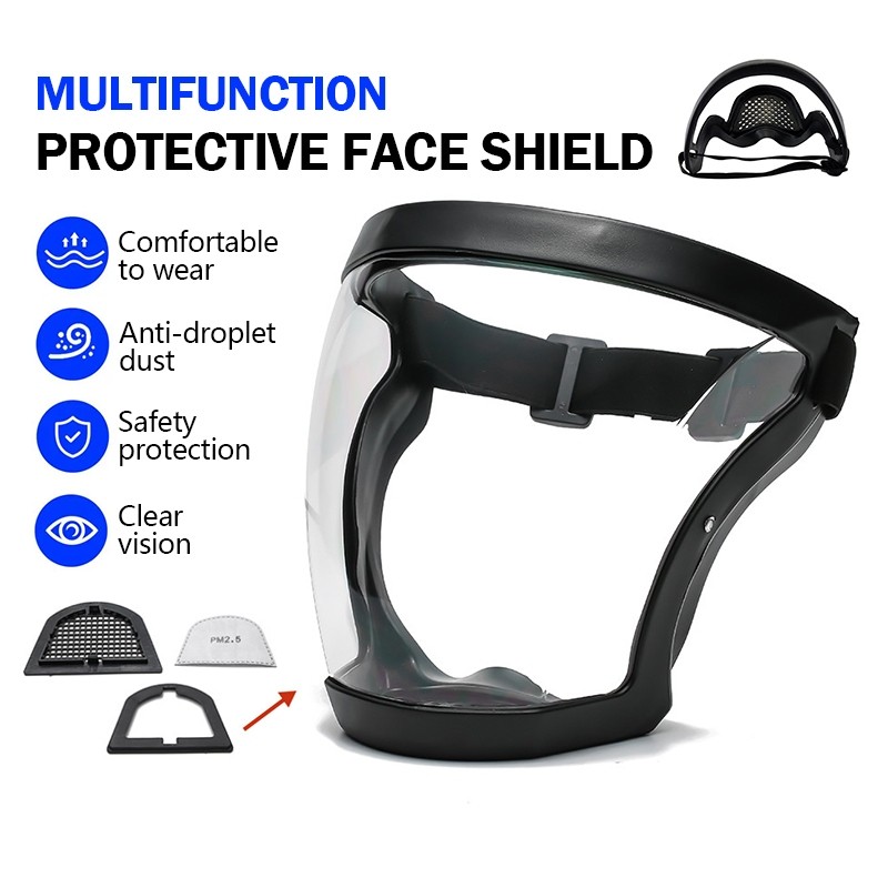 🚴Active Protective Hybrid Full Face Shield Face Mask Transparent Anti-Fog Dust-Proof Kitchen Sports Reusable Face Mask面罩