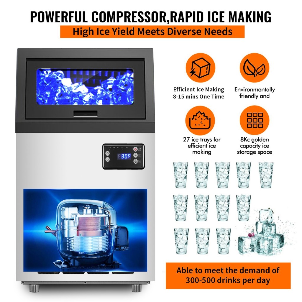 🔥5-year warranty🔥Large Automatic Ice Machine Double Water Inlet Commercial Cube Ice Maker Milk Tea Shop Catering 商用制冰机