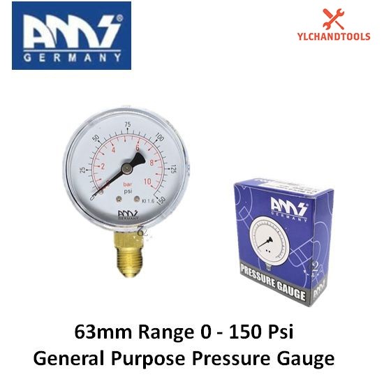 *AMS* PRESSURE GAUGE 63MM DIAL 1/4'' BSP BOTTOM CONNECTION