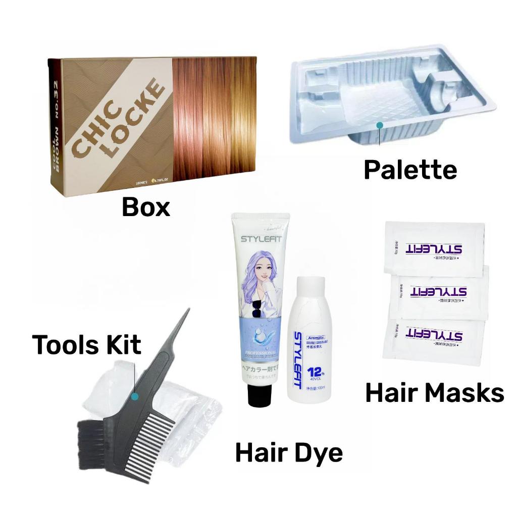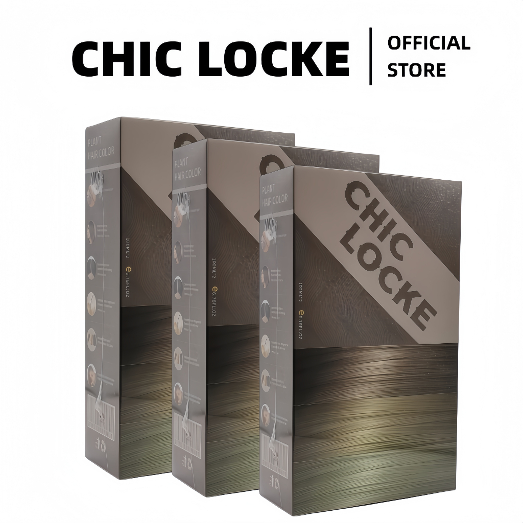 CHIC LOCKE Hazelnut Grey Brown Color No Need Bleach Plant Hair Dye Cream 600ML (3 Boxes For Waist Length)