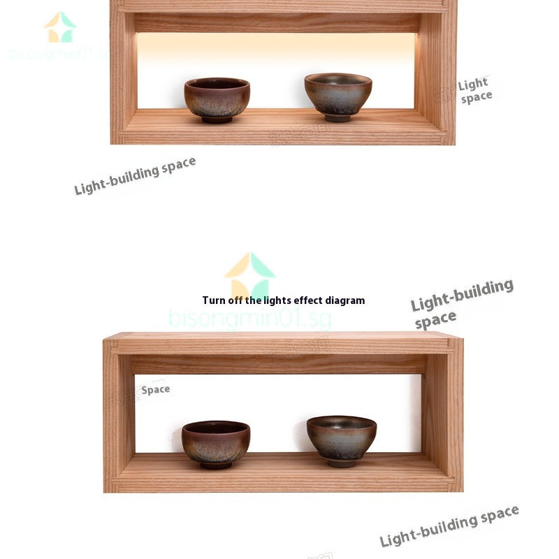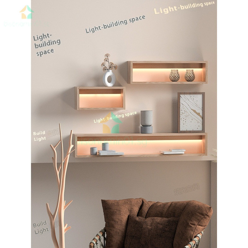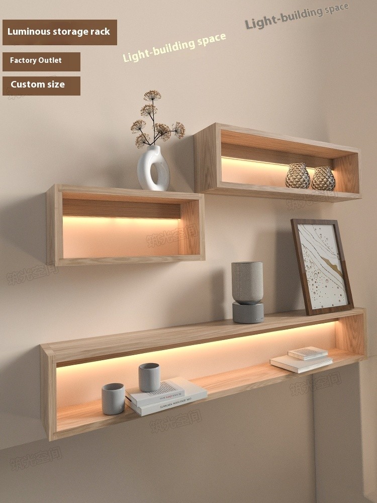 Storage Shelf Rack Wood Lighting Solid Storage Rack Nordic Style Wooden Wall Mounted Luminous Partition Straight Decorative Hanging On The New Chinese bisongmin01.sg