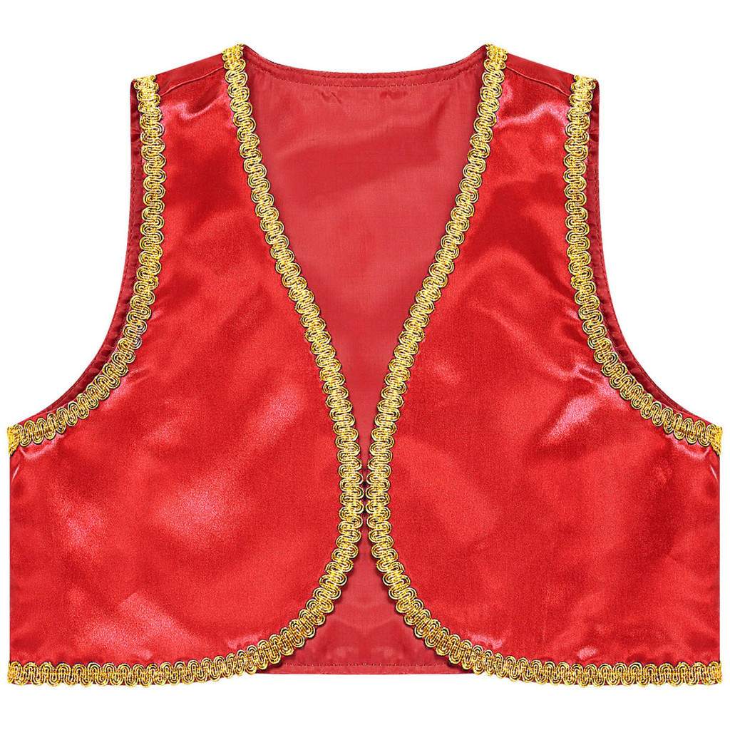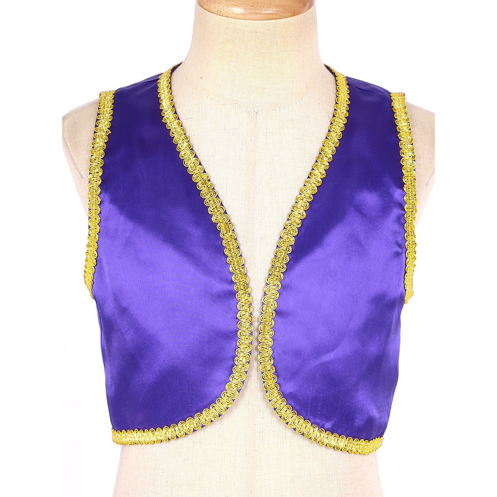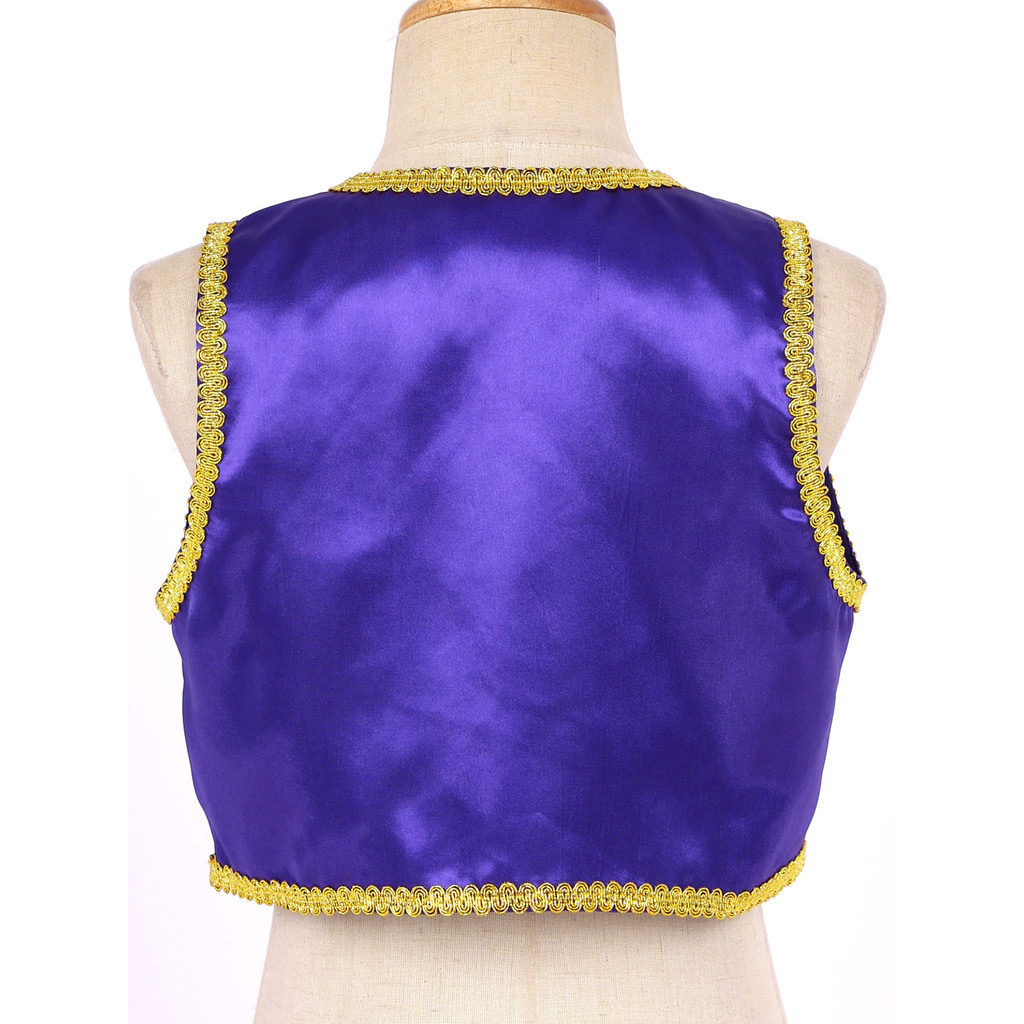 Kids Boys Halloween Aladdin Prince Cosplay Costume Open Front Golden Braided Trim Vest Waistcoat Theme Party Masquerade Arabian Fairytale Role Play Clothes