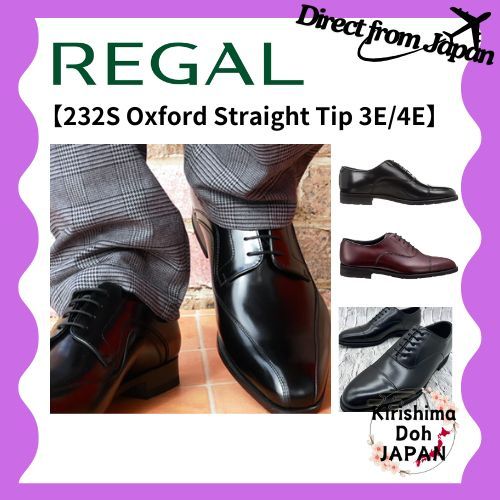 REGAL 232S Oxford Straight Tip 3E/4E "Black" "Wine" Cemented, Soft glass leather, Lightweight sole, Round toe, Simple, Stylish, Smart, Relaxed Fit, Men's Business Shoes, Made in Japan [Direct from Japan]