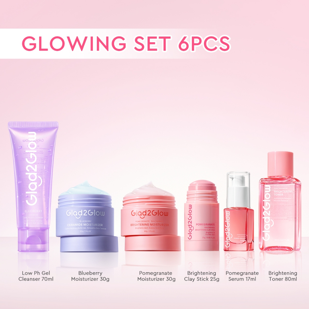 [BEST SELLER]Glad2Glow 6pcs Basic Skincare Set with Serum+Moisturizer*2+Cleanser+Toner/Eyecream+Clay Stick for Brighten