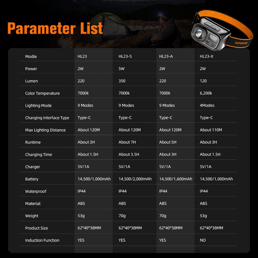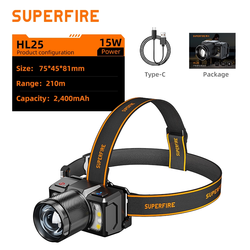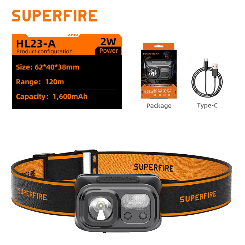 SUPERFIRE HL23-S 5W LED Rechargeable Headlamp Super Bright Fishing Light Long-range Work Light Outdoor Headlight