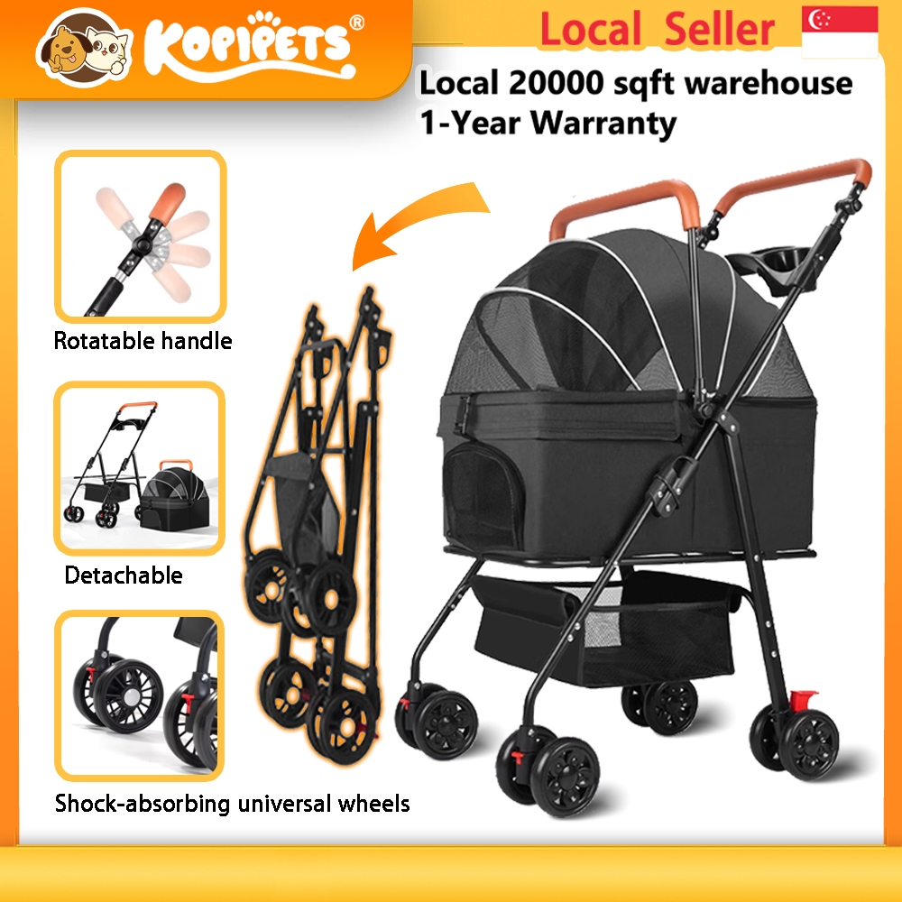 Kopipets Local Seller 3-in-1 Foldable Pet Stroller with Detachable Cat & Dog Carrier Lightweight