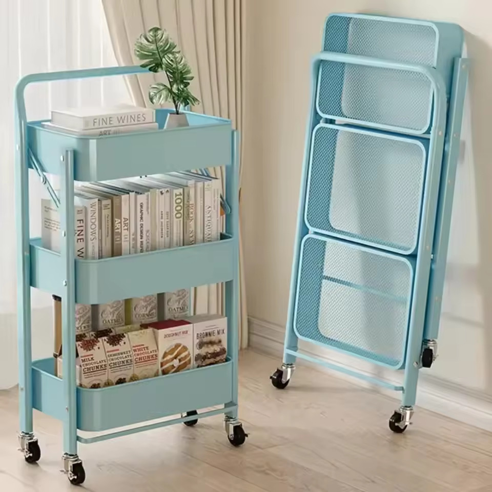 🔥Folding Storage Trolley Rack Kitchen Bathroom Multi Storey Snacks Shelving Bedroom Mobile Trolley