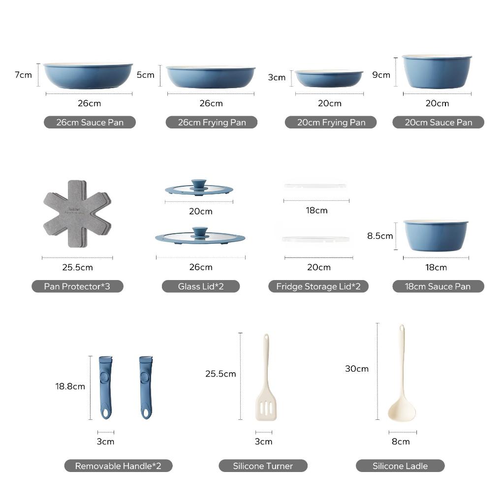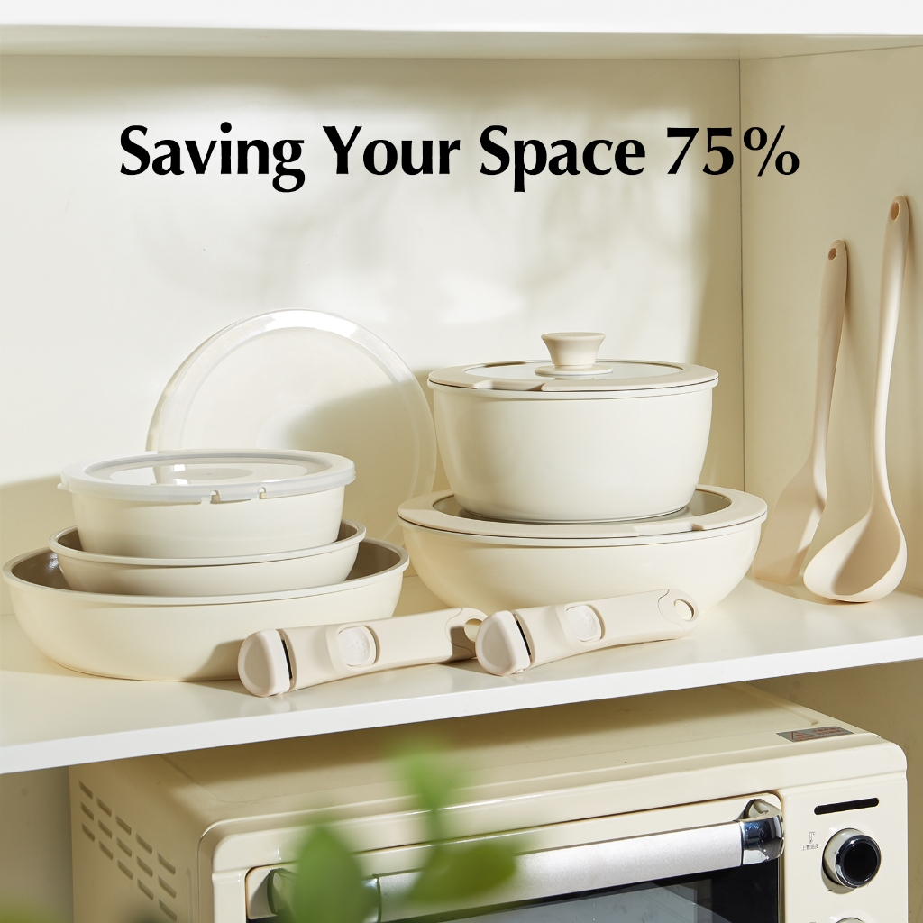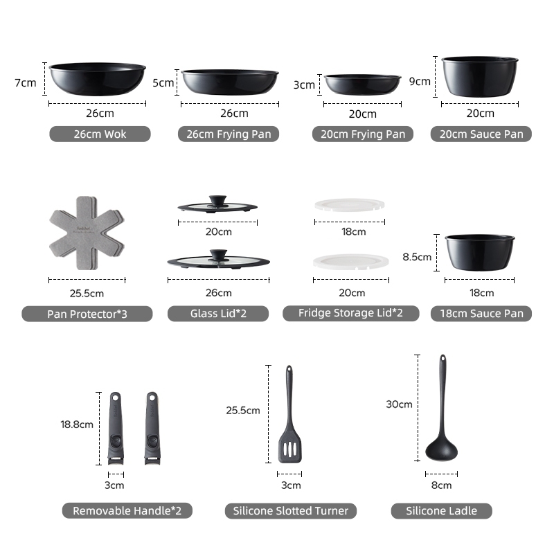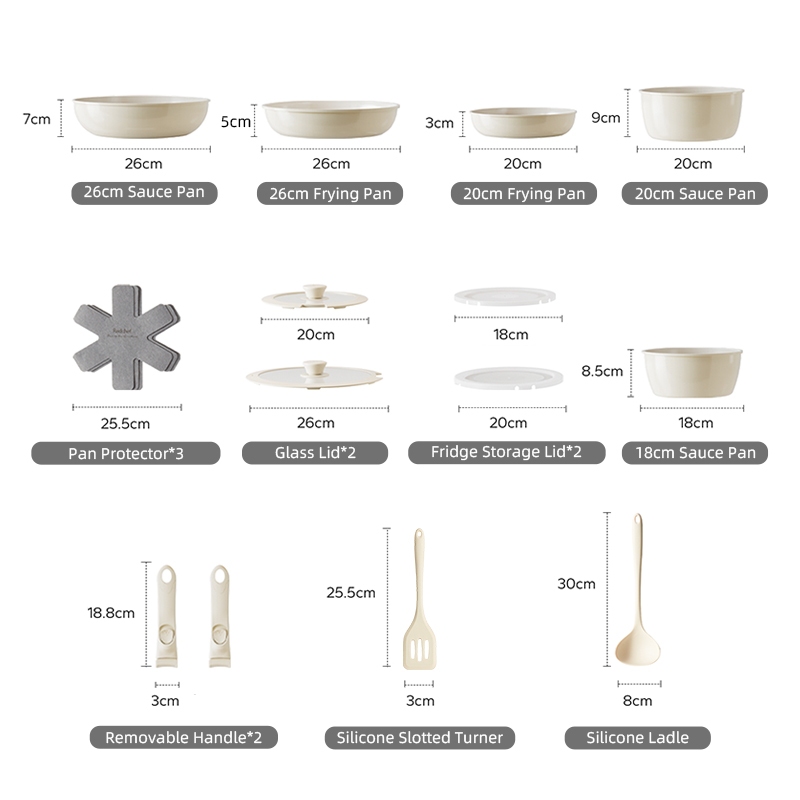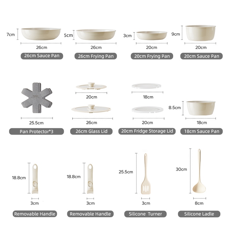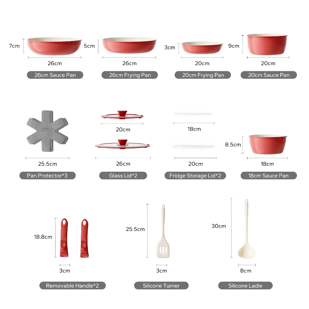 Redchef Nonstick Ceramic Rock Cookware Set Handle Removable 16Pcs No PFAS& PTFE& PFOA Suitable for All Stoves