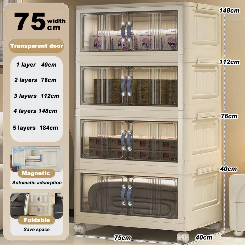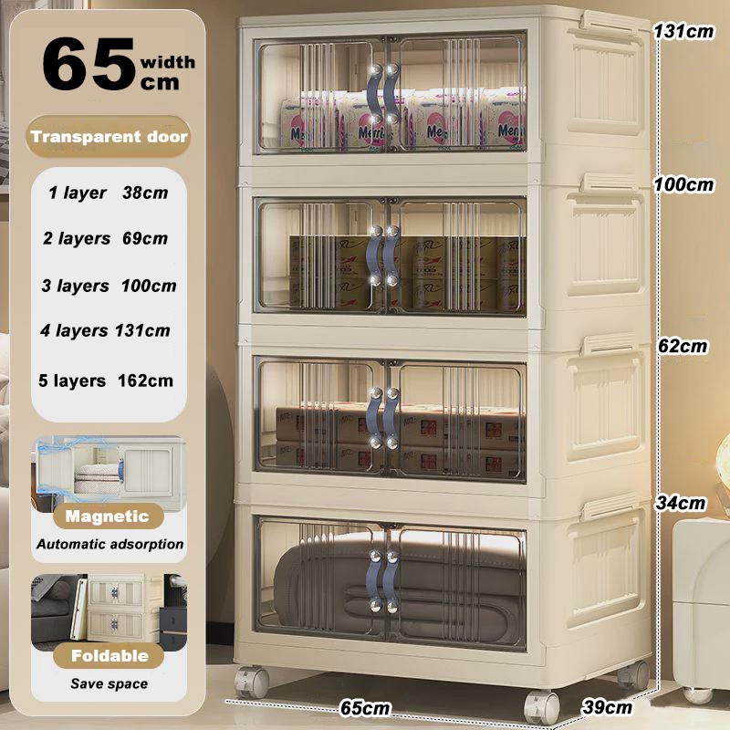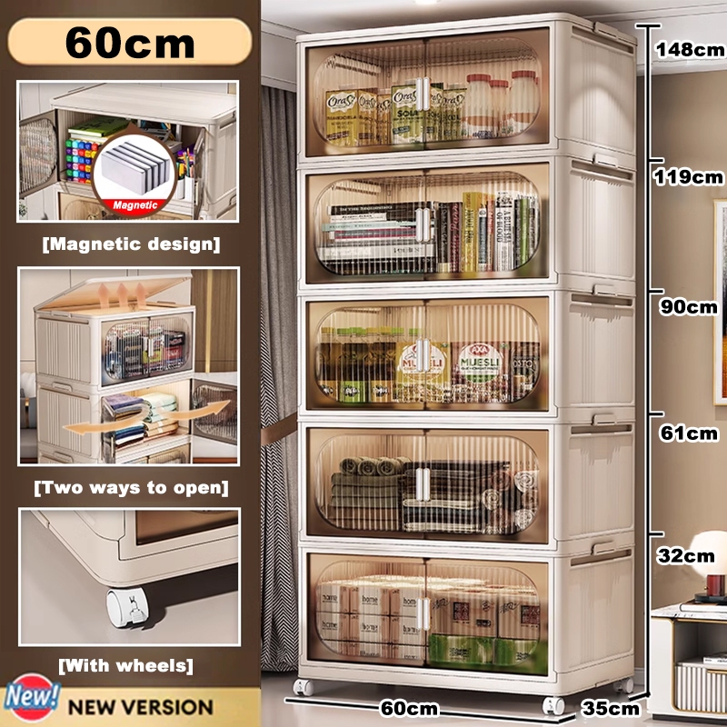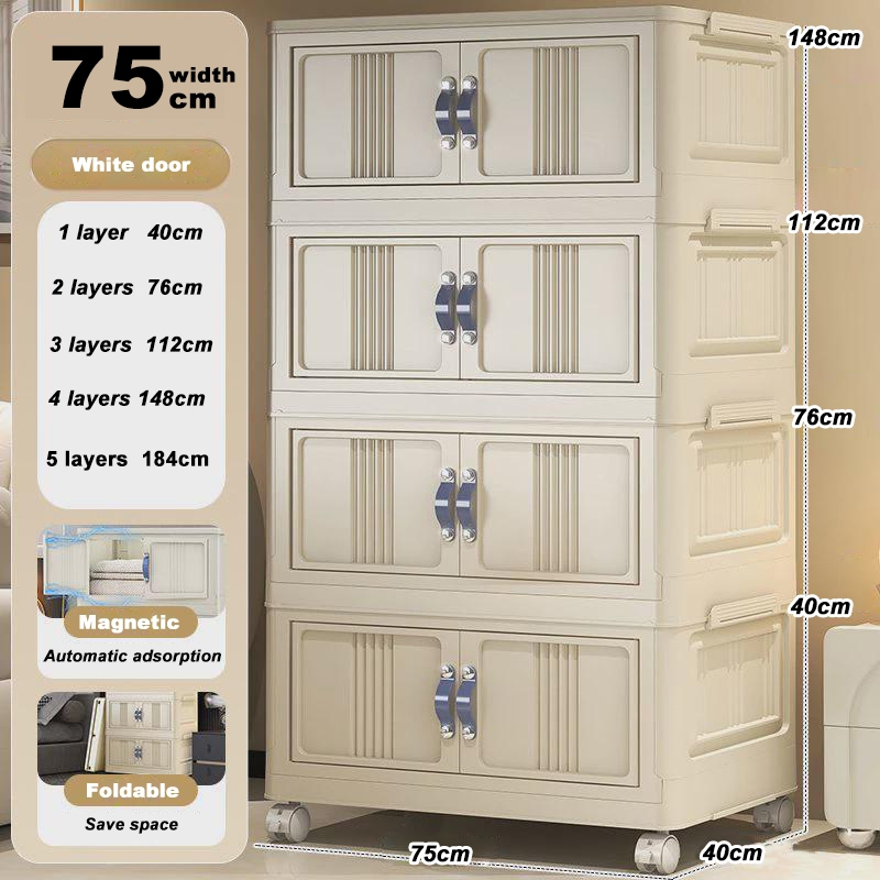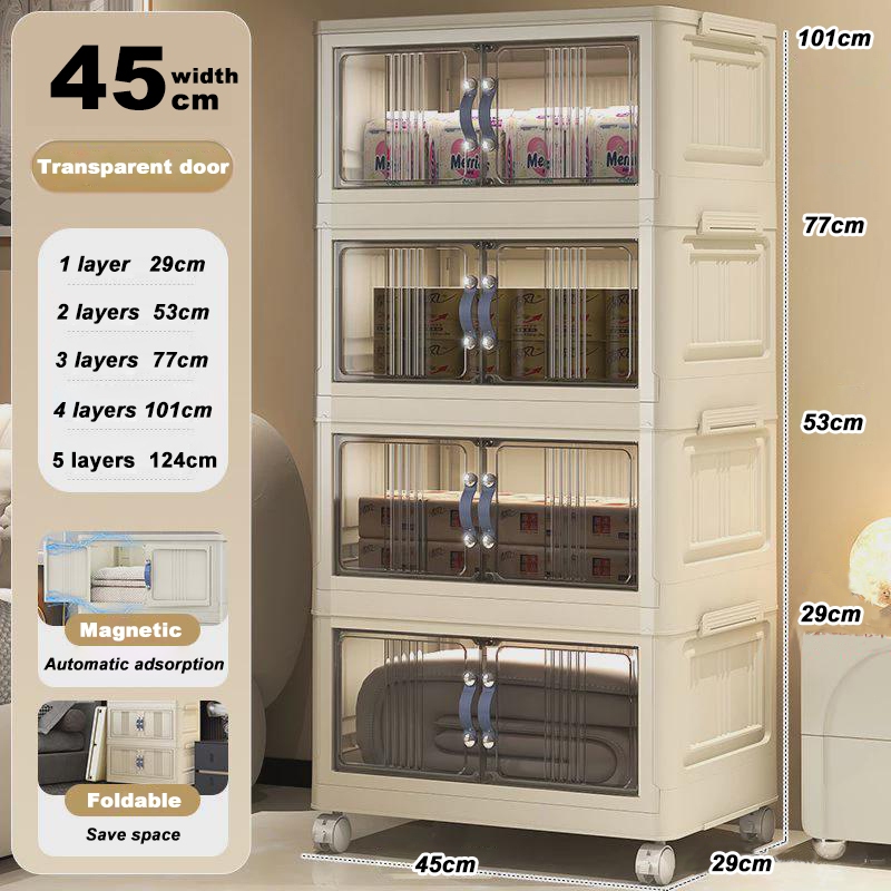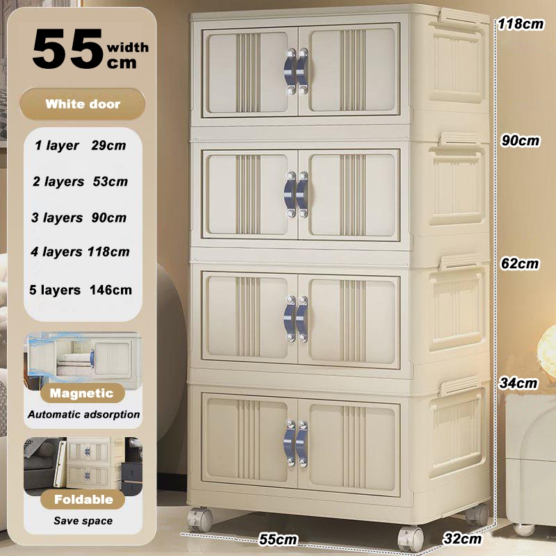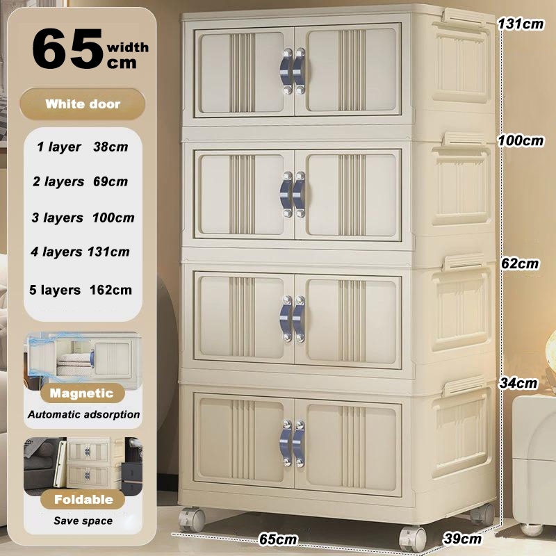 4.4🎁YOUNEED 5 Layers Folding Storage Cabinet Clothing Snacks Toy Storage Organizer Thickened Home Wardrobe With Wheels