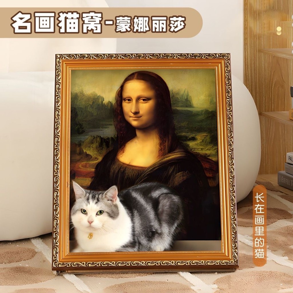 Mona Lisa Oil Painting Cat House Cat Scratching Board Corrugated Paper Wear-Resistant Non-Shedding Cat House World Famous Painting Frame Cat House Toy
