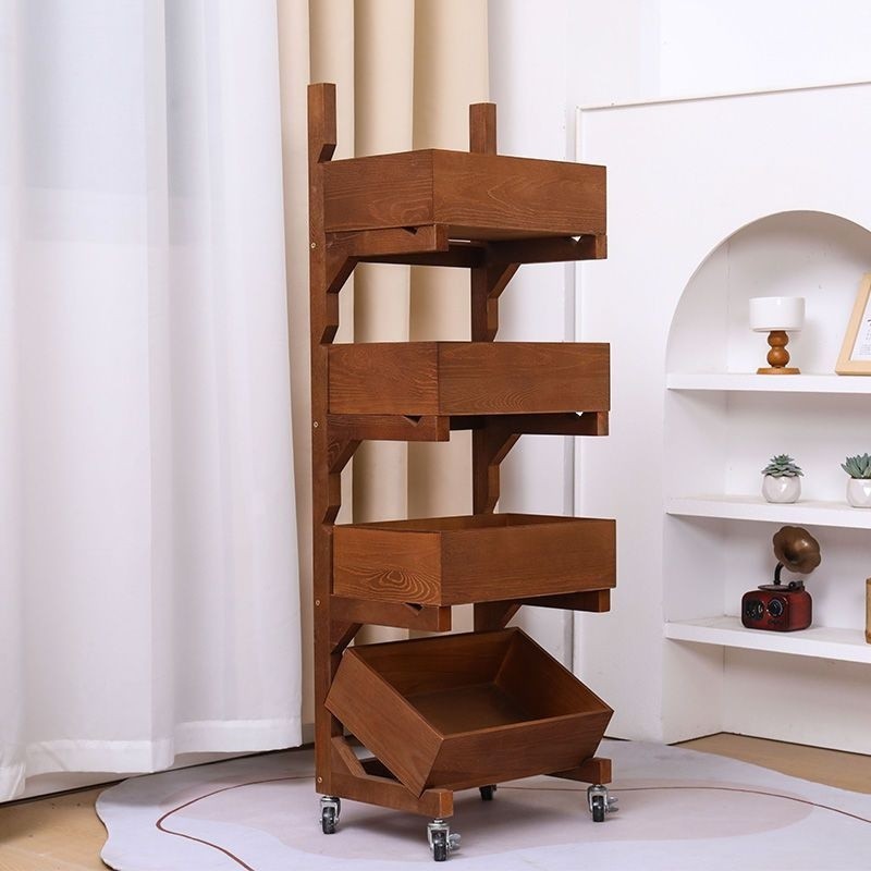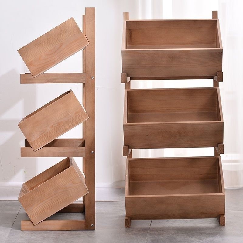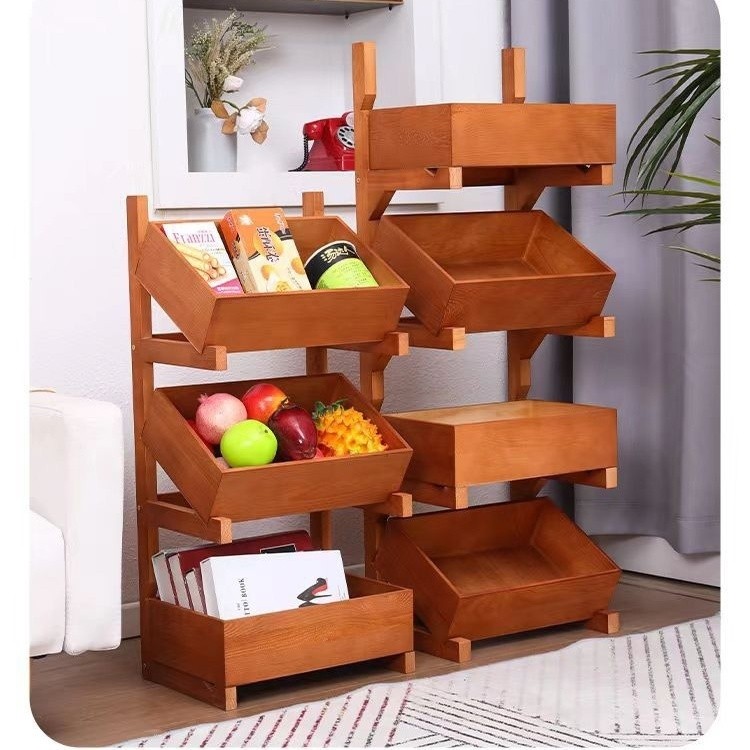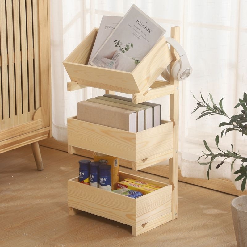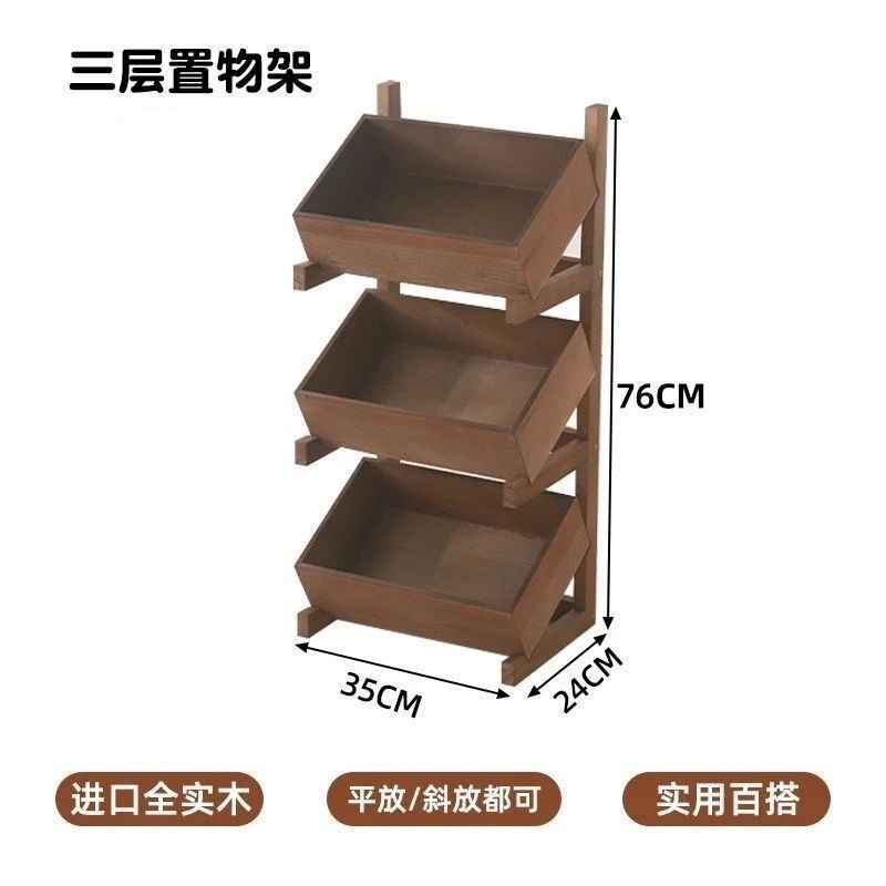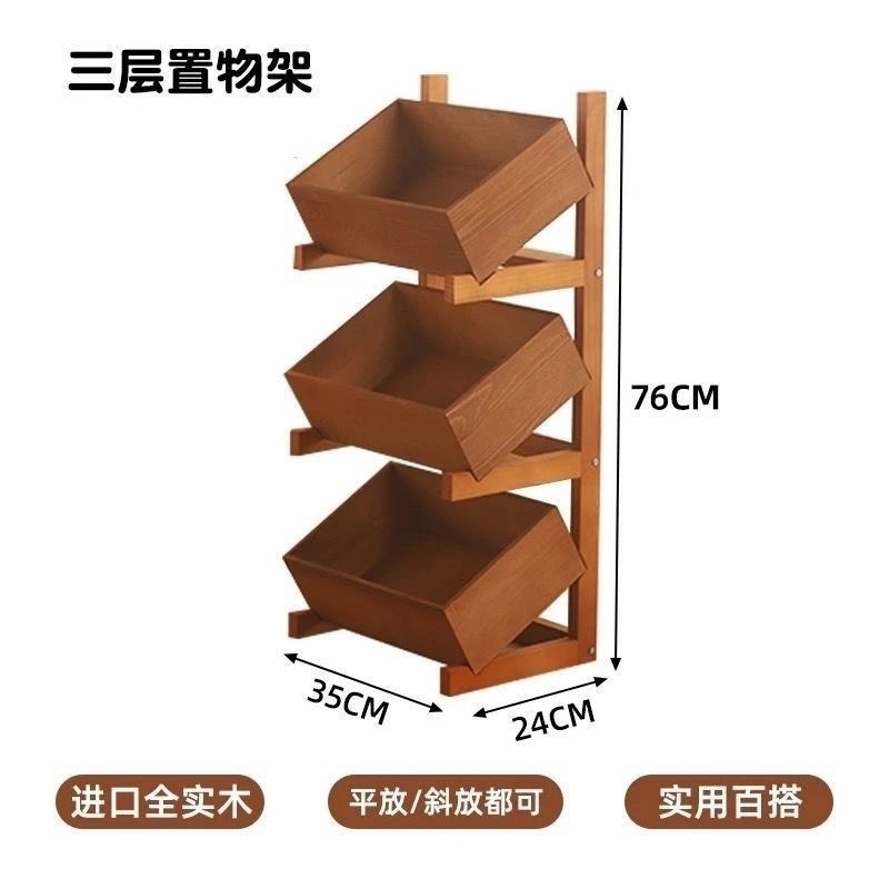 [in stock] Three-Layer Floor-Standing Storage Rack for Snacks, Multi-Layer Household Living Room Vegetable Organizer, Kitchen Solid Wood Miscellaneous Bookshelf