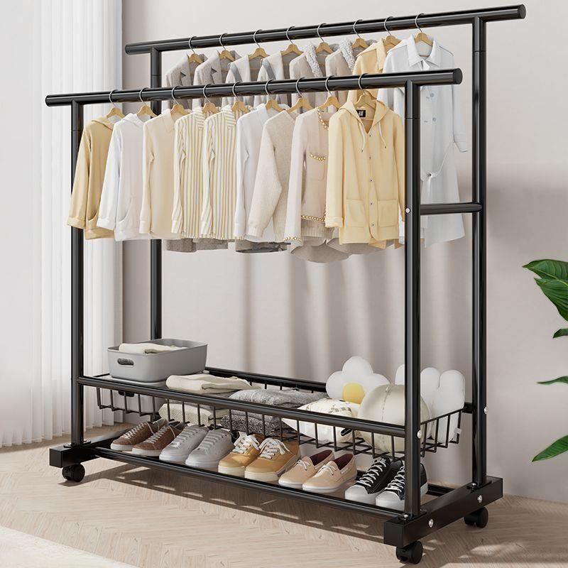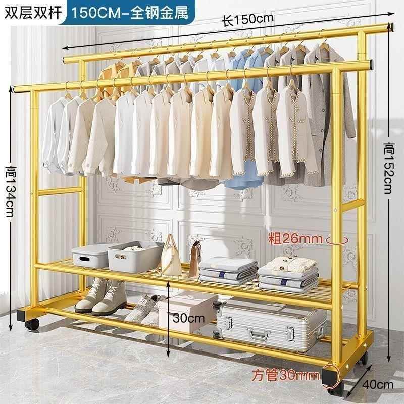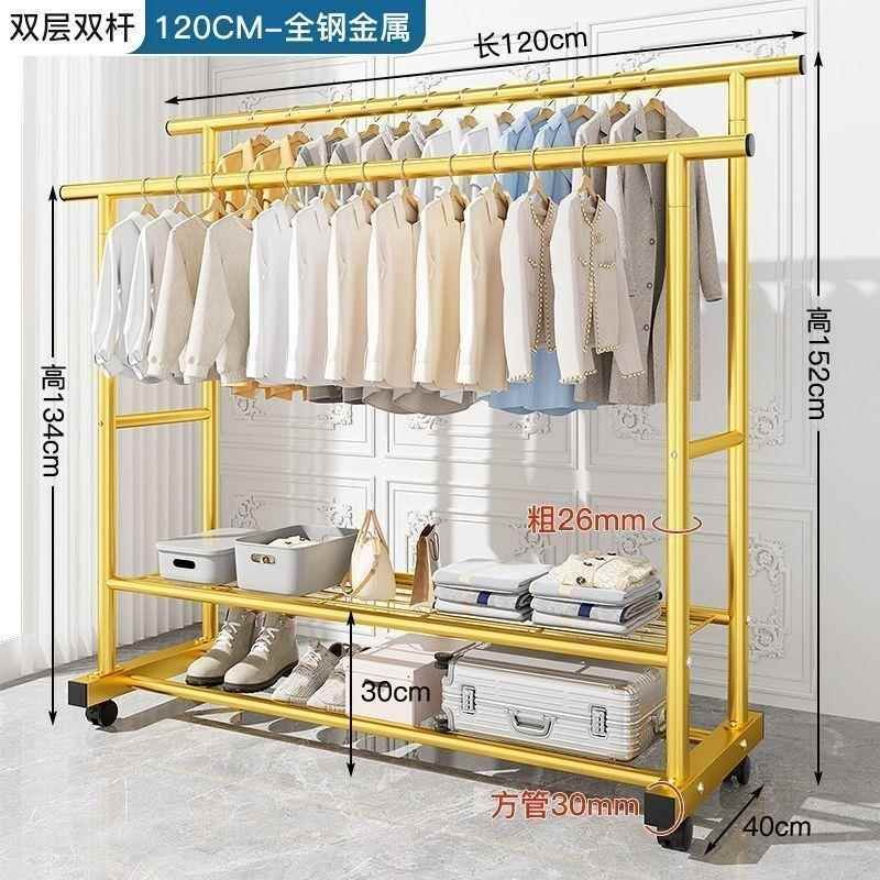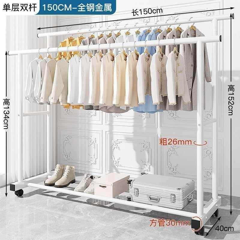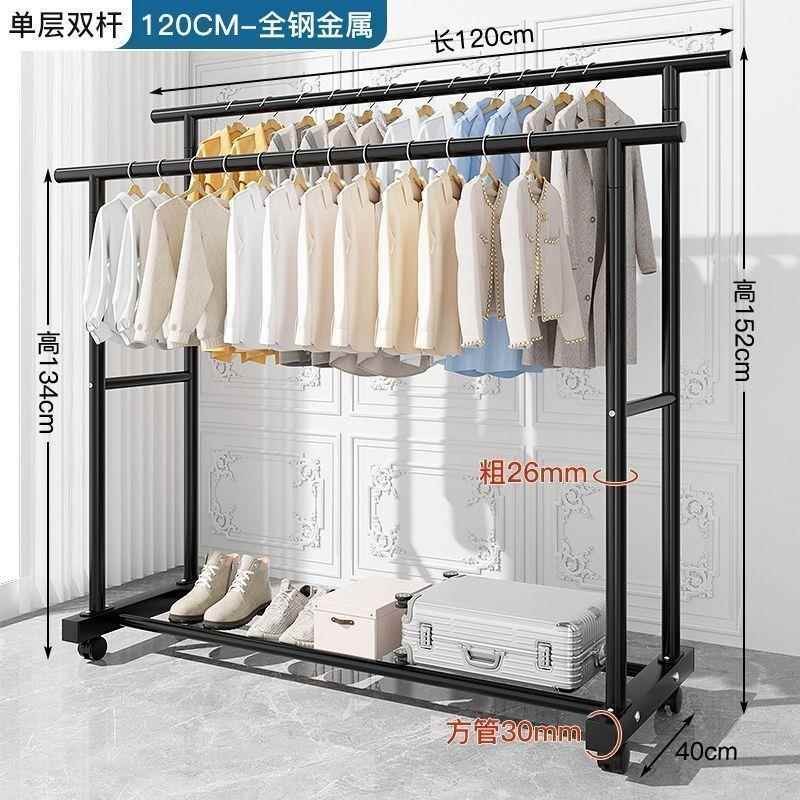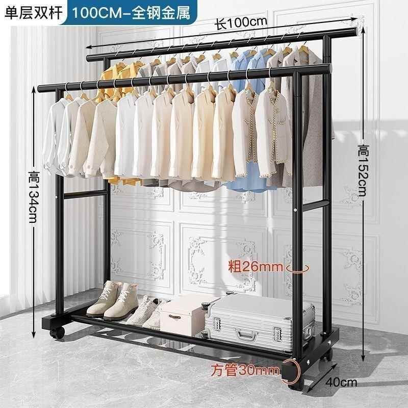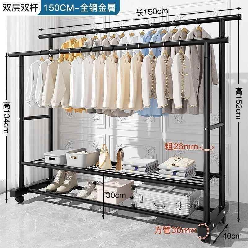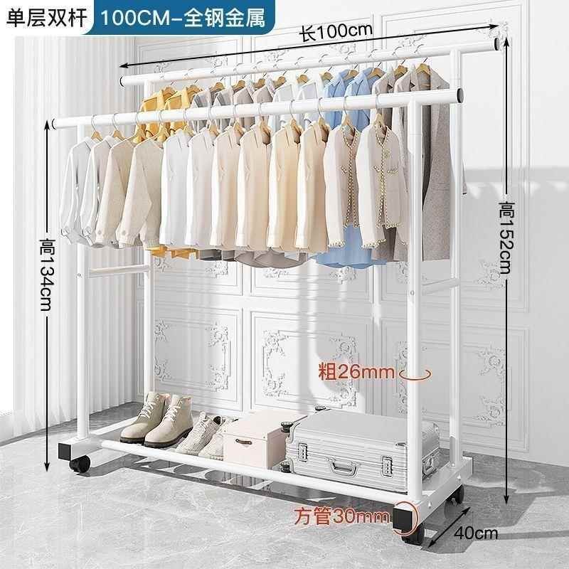 [in stock] Extra Thick Double Rod Mobile Dormitory Clothes Rack Extra Thick Clothes Hanger Floor Standing Household Bedroom Balcony Clothes Hanger Simple