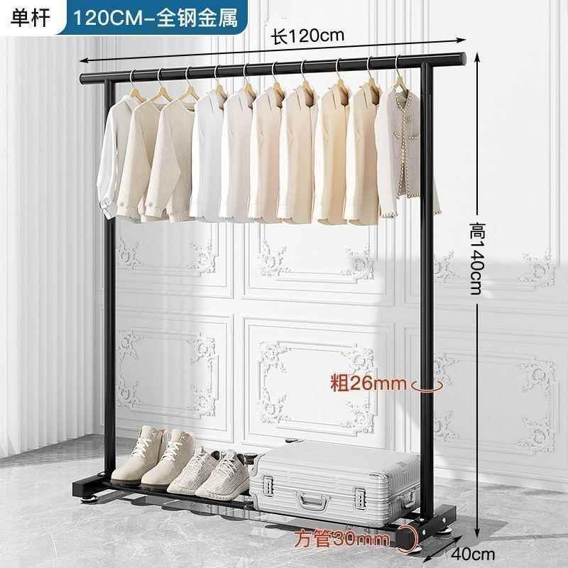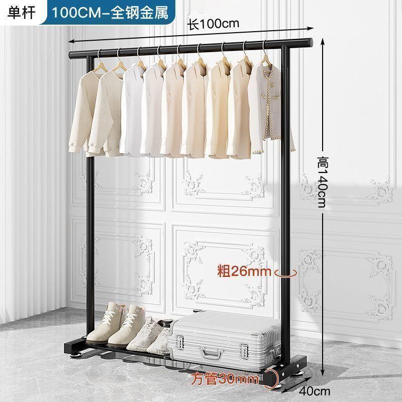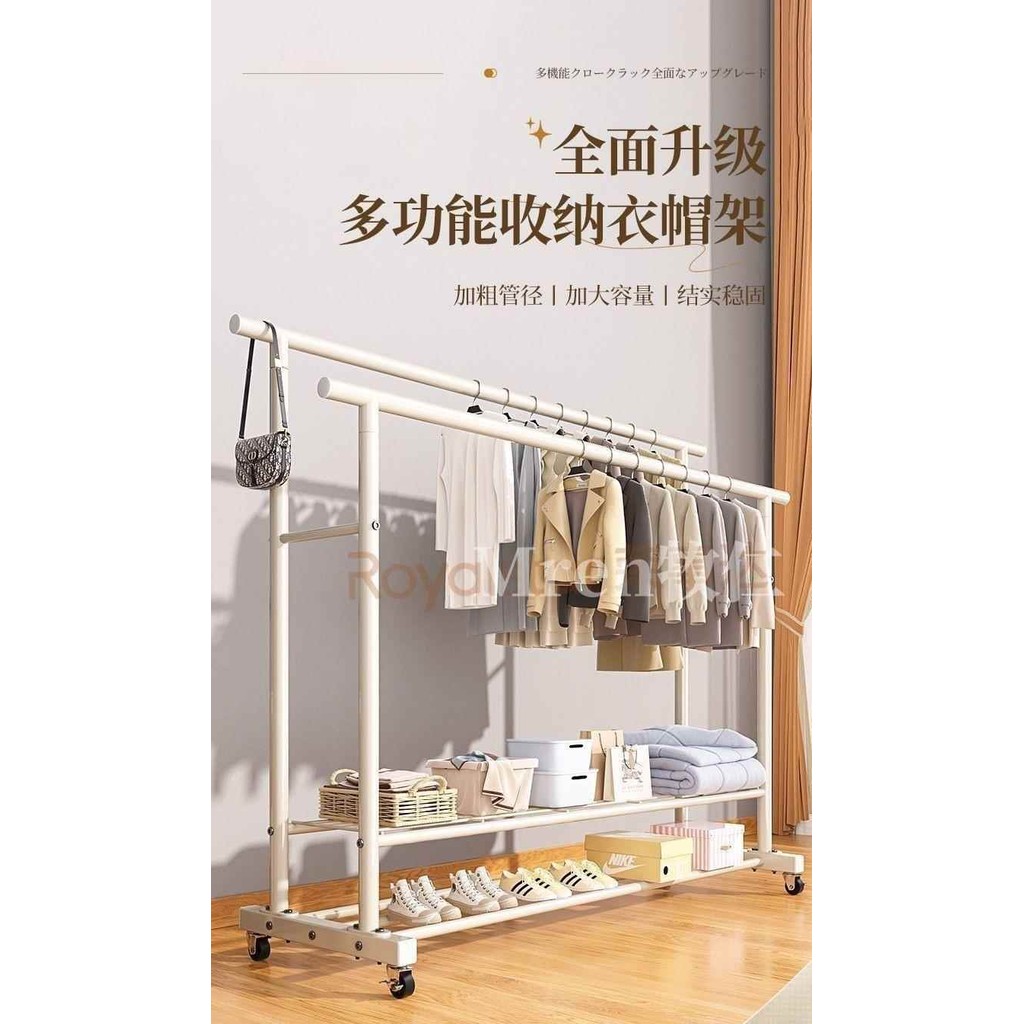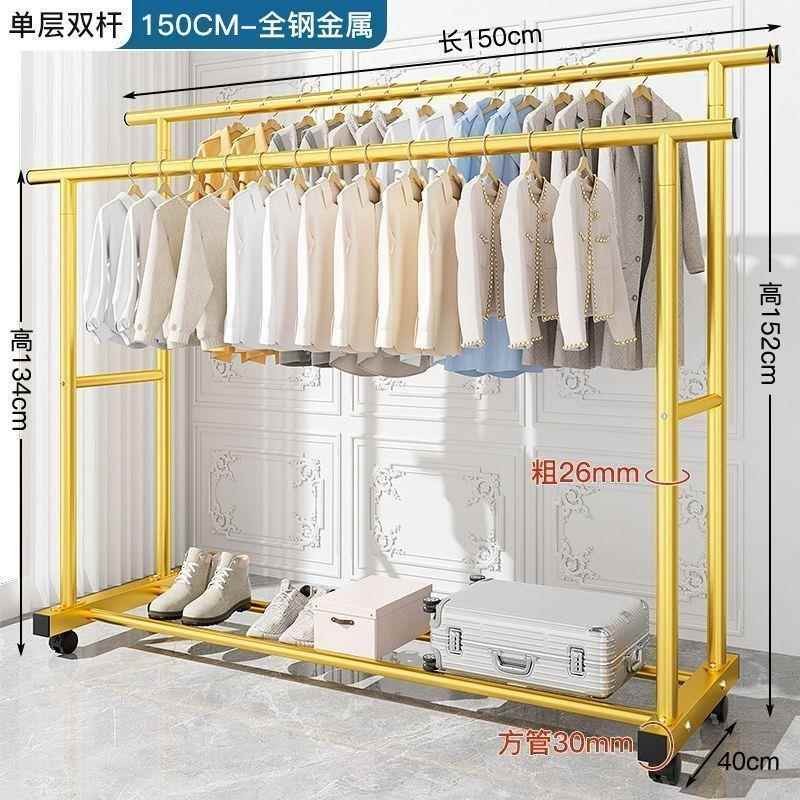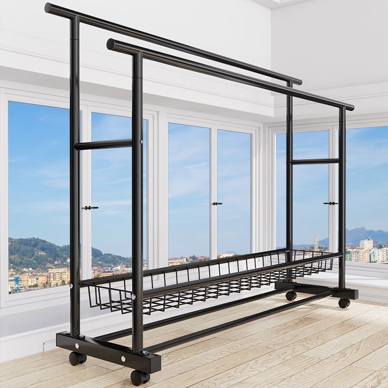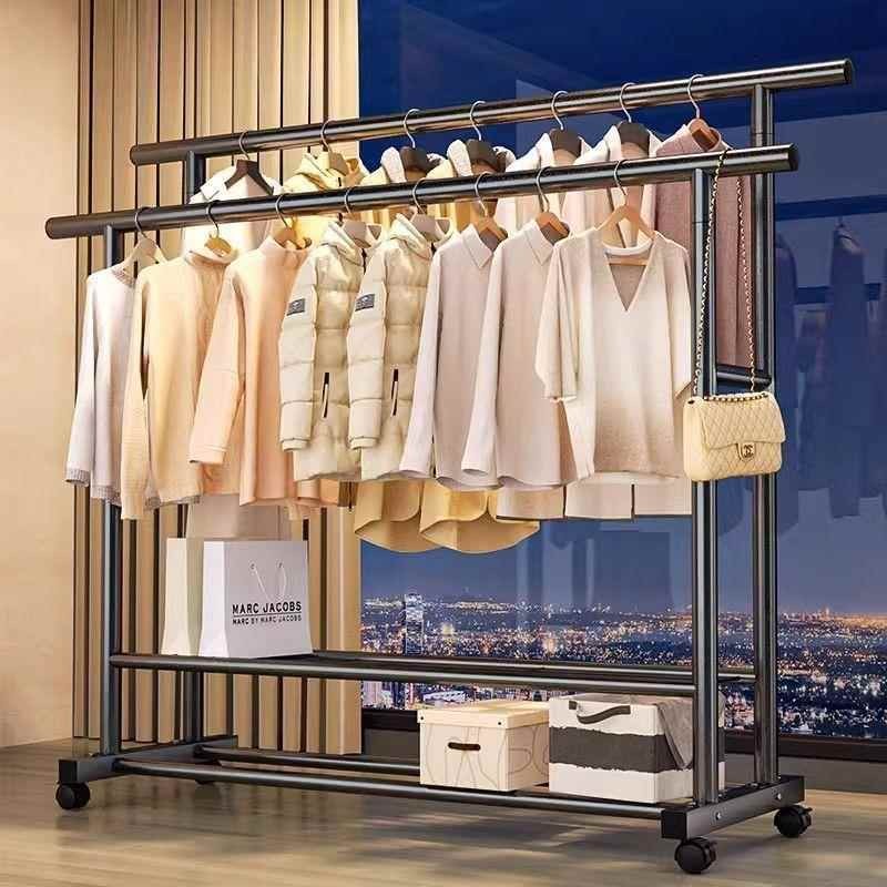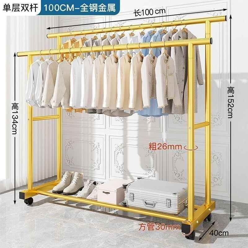 [in stock] Extra Thick Double Rod Mobile Dormitory Clothes Rack Extra Thick Clothes Hanger Floor Standing Household Bedroom Balcony Clothes Hanger Simple