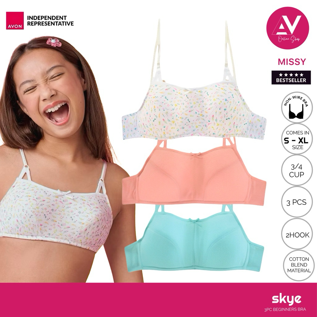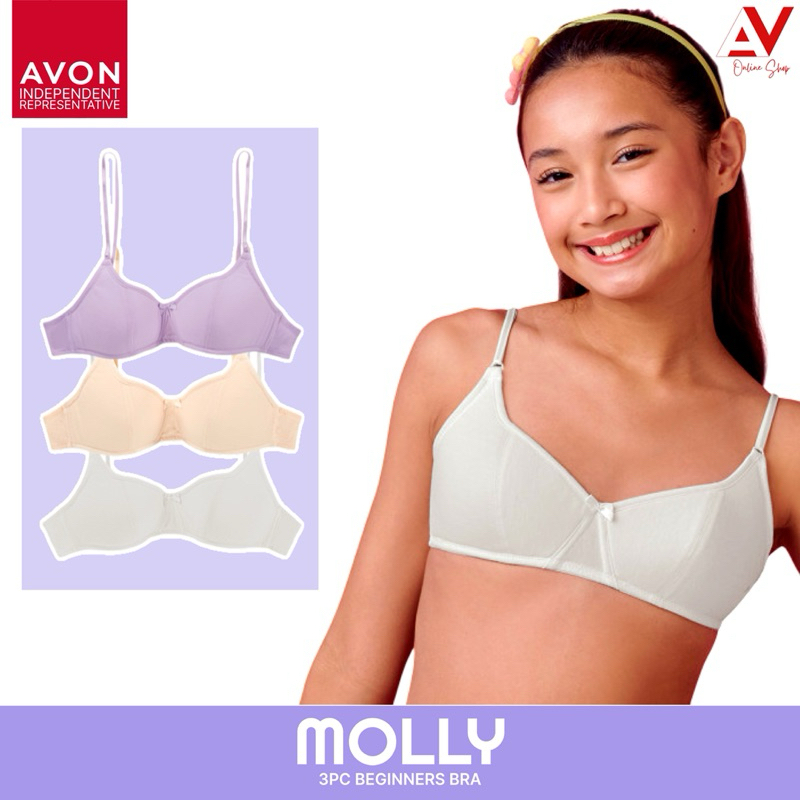 Avon Molly 3PC Beginners Bra for Girls | Cotton Semi Sando Non-Wire | 1 Hook 3 Adjust | Ages 8–12
