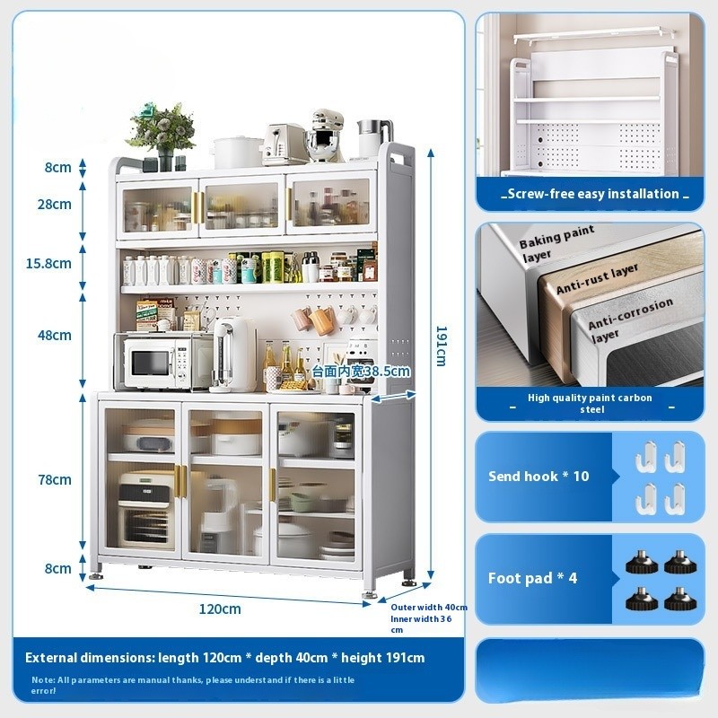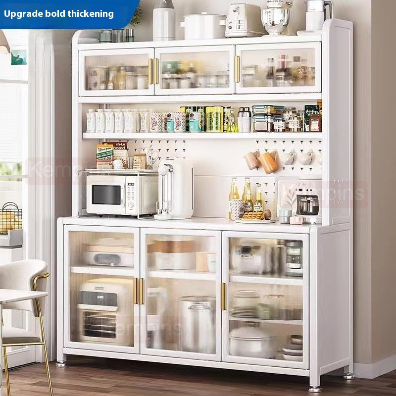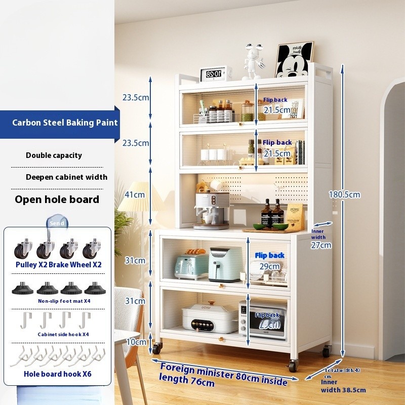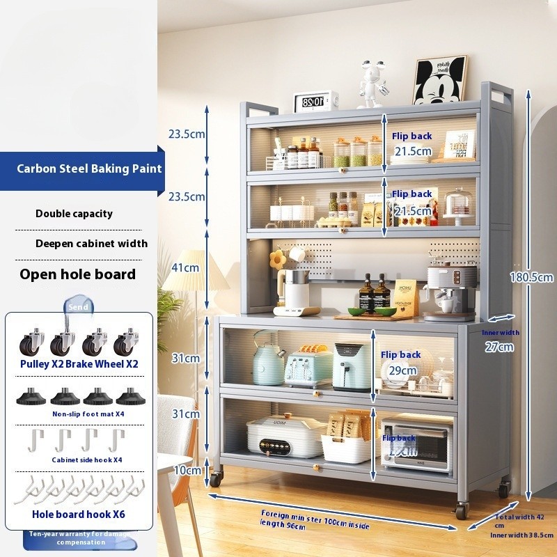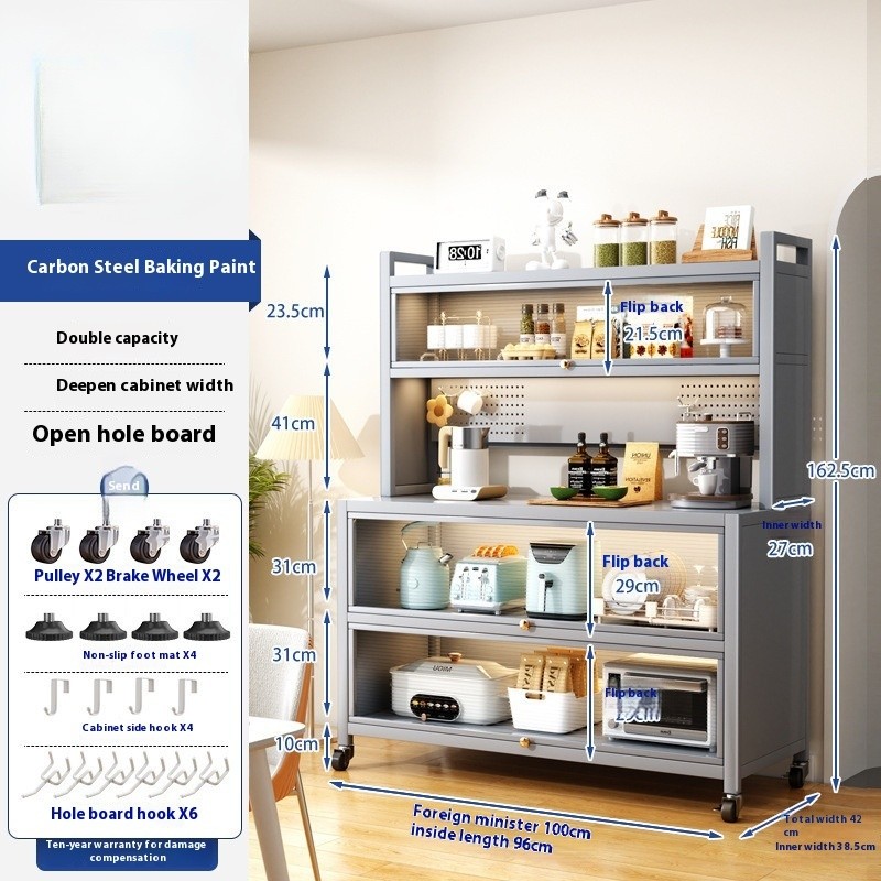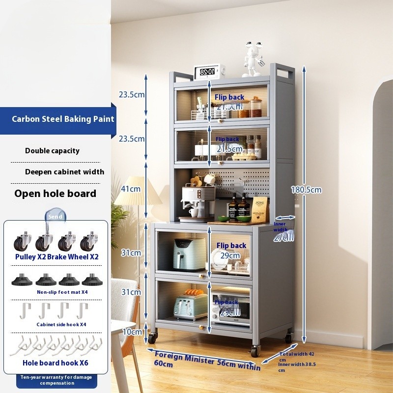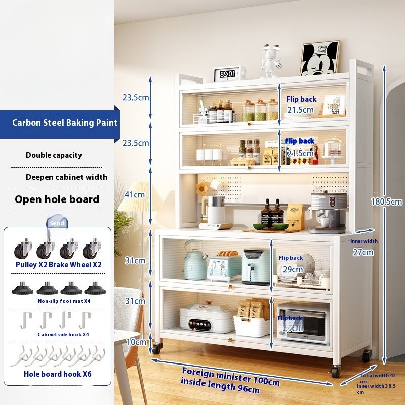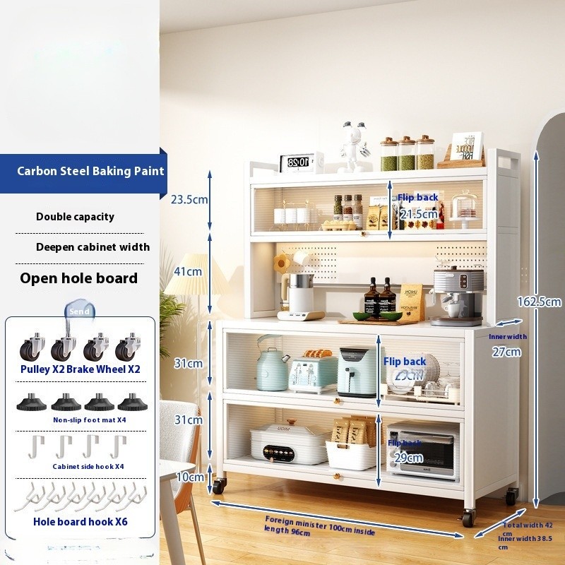 Kitchen Cabinet With Wheels Storage Multifunctional Rack Side Multi Layer Door Microwave Oven Cookware Floor Standing