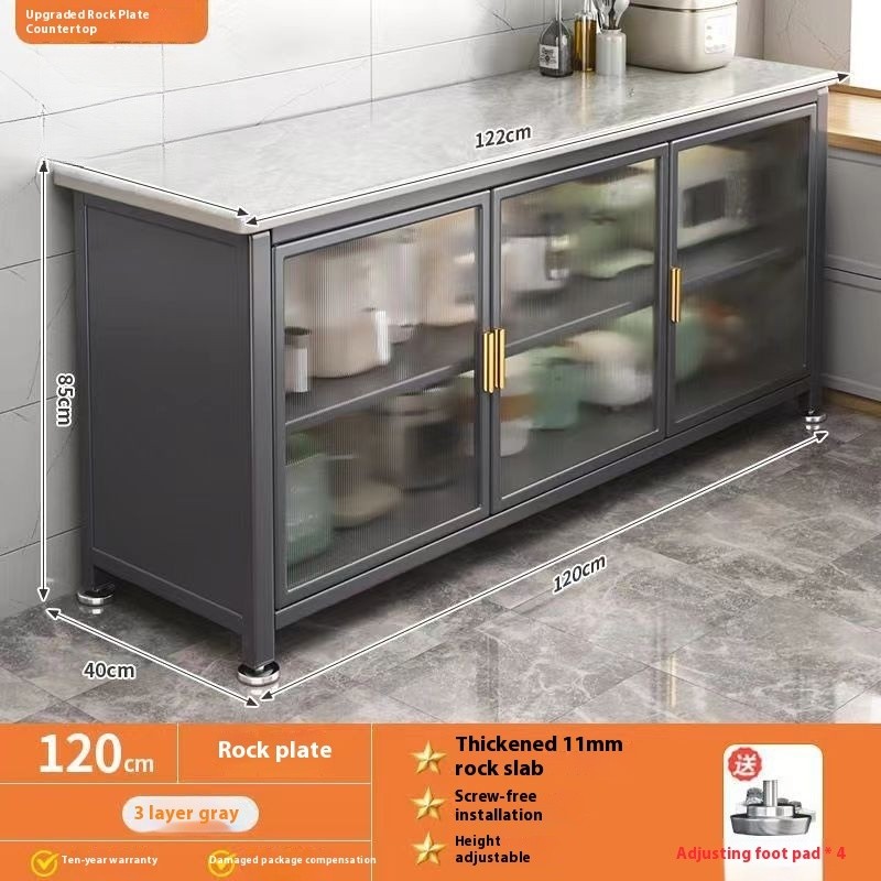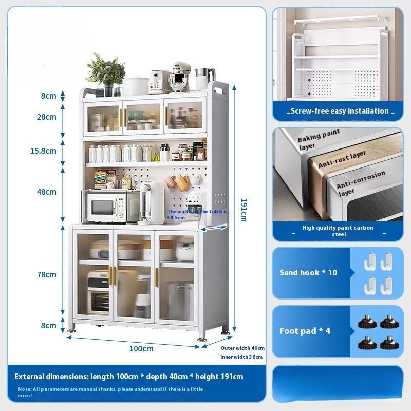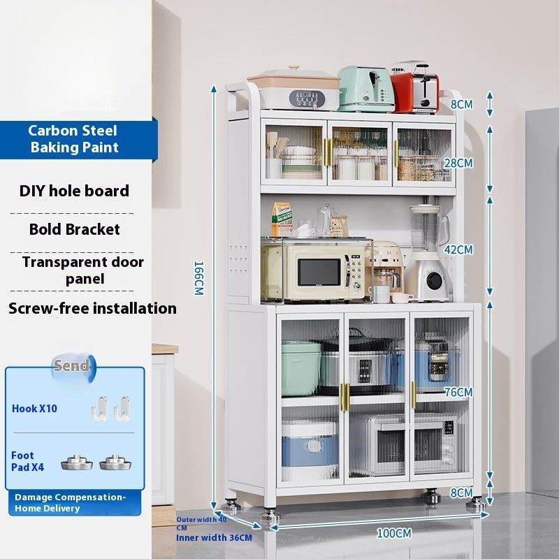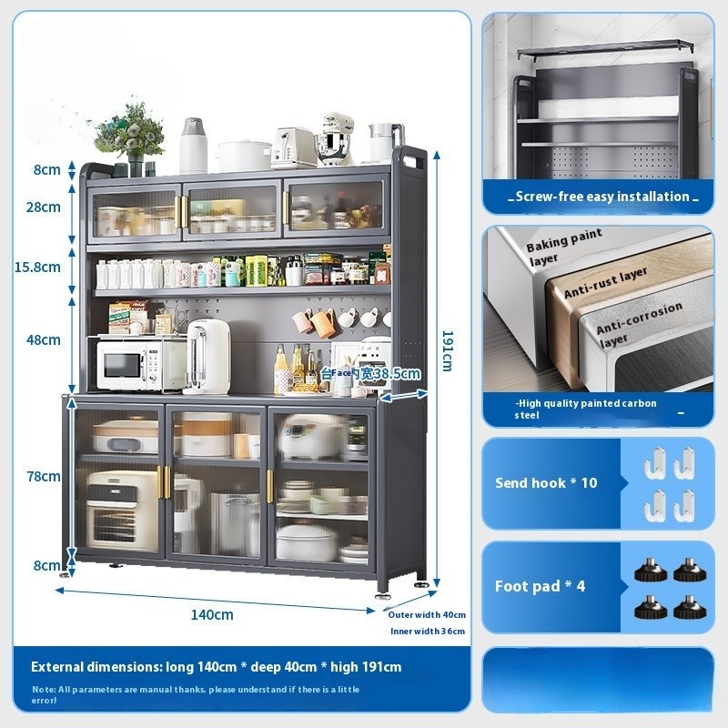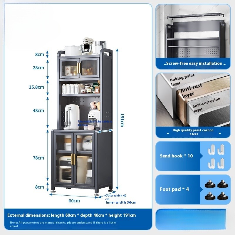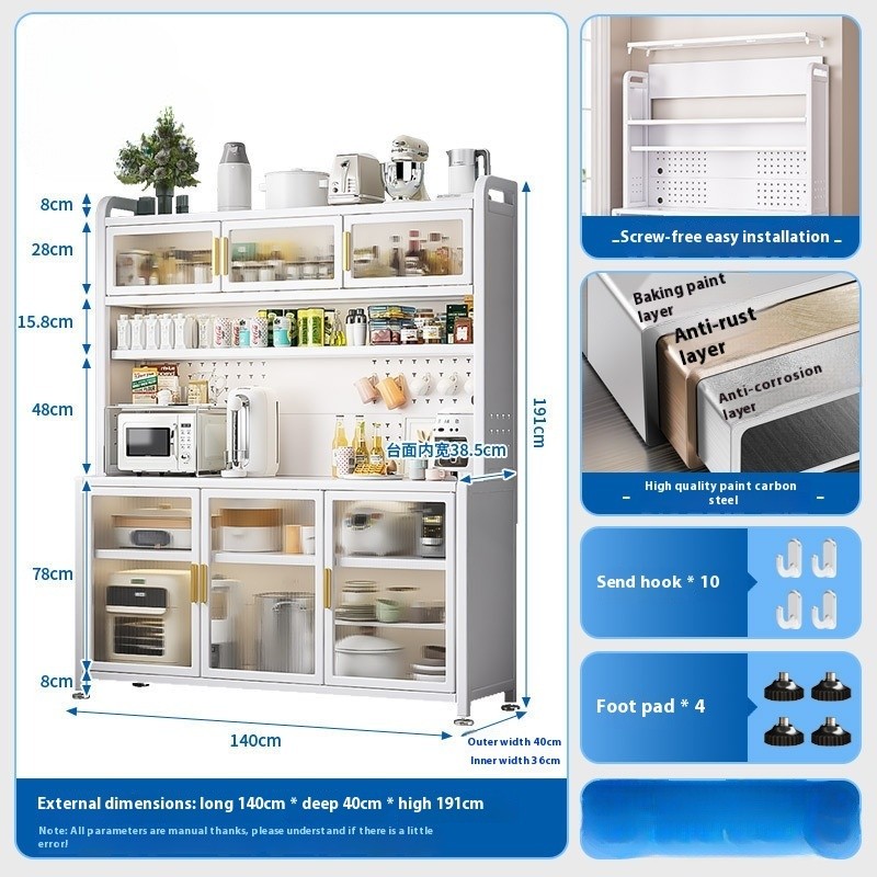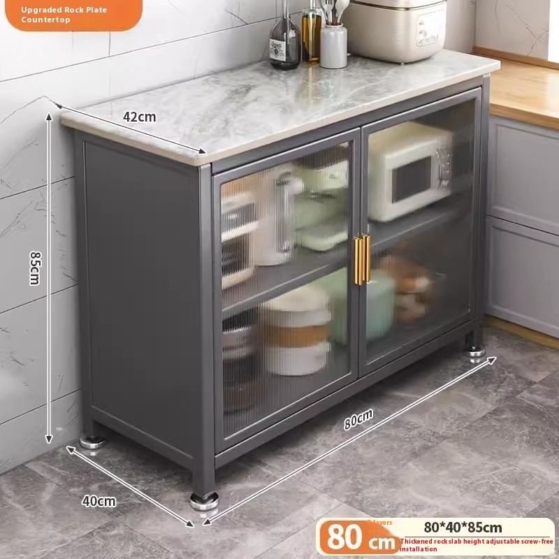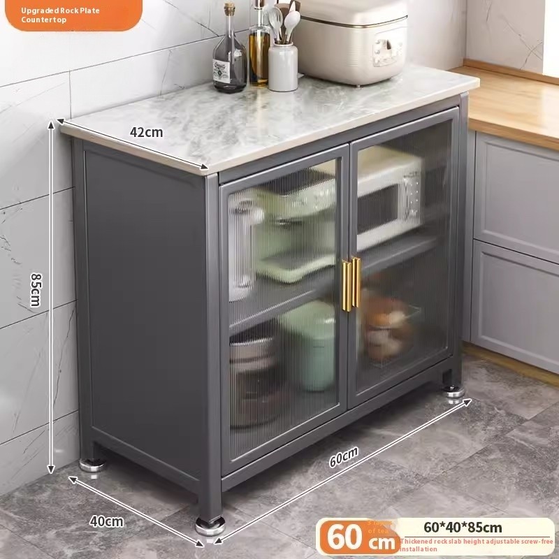 Kitchen Cabinet With Wheels Storage Multifunctional Rack Side Multi Layer Door Microwave Oven Cookware Floor Standing
