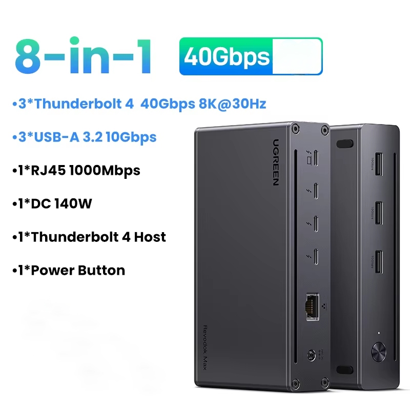 UGREEN Revodok Max 208 Thunderbolt 4 Dock 8-in-1 40Gbps, Dual 4K@60Hz/8K, 85W PD